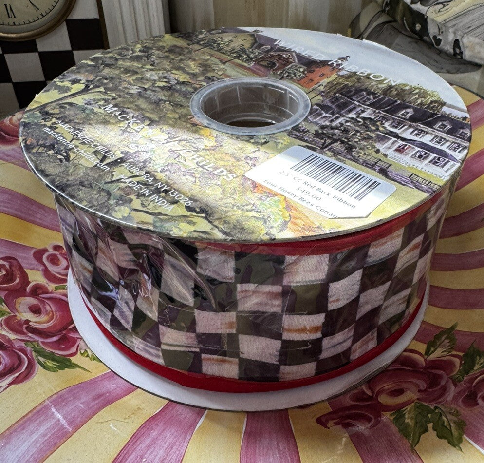 The MacKenzie Childs 1 Roll Courtly Check Wired Ribbon in Red is a festive and versatile crafting supply perfect for a variety of projects. With a 2" width and 10 yards of polyester material, this wire-edged ribbon spool features a printed Courtly Check design in a vibrant multicolor palette. The sleek red theme adds a touch of sophistication to any crafting project, making it ideal for gift wrapping, floral arrangements, or home decor accents. Add a touch of style and creativity to your crafts with this high-quality ribbon from MacKenzie Childs.