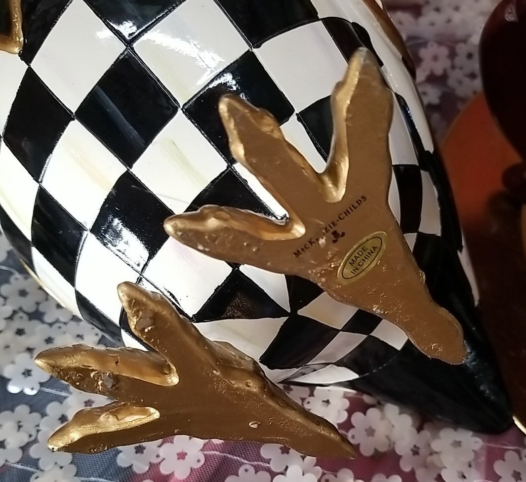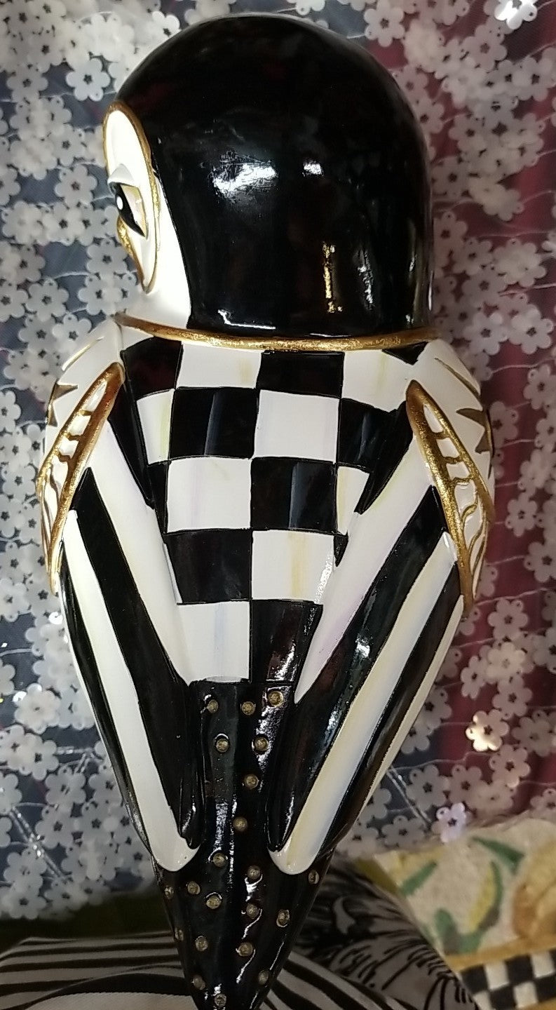 The Mackenzie Childs Cosmique Owl figurine is a medium-sized, black resin piece perfect for all occasions. It features a star design, making it a stylish addition to any room in your home. Care instructions recommend spot cleaning only, and the item measures 12 inches in width. This figurine from the MacKenzie-Childs brand is a unique and eye-catching decor piece that does not require additional customization. Made in China, this figurine is a versatile and beautiful decoration for your space.