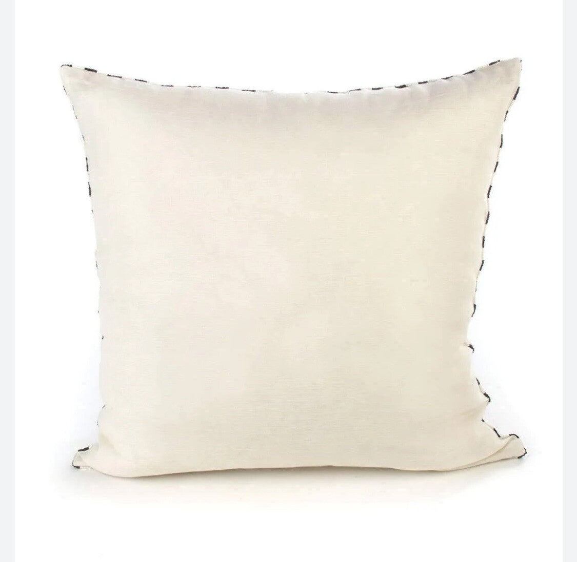 The MacKenzie-Childs Cutting Garden beaded decorative pillow features a striking striped design with floral accents, adding a touch of elegance to any home decor. The pillow is shaped like a flower and boasts a beaded construction with intricate detailing, reflecting a theme of flowers and a style reminiscent of a cutting garden. The zip closure ensures easy maintenance and the pillow measures 18 inches in both height and width, making it a standout piece for any living space.