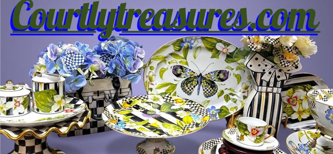 The MacKenzie-Childs Doodles Handbag Vase is a whimsical, handbag-shaped vase made of dolomite ceramic, decorated with the brand's signature doodles and Courtly Check® pattern. It's designed for displaying flowers, either fresh or everlasting, and is a statement piece for any room. Brand New