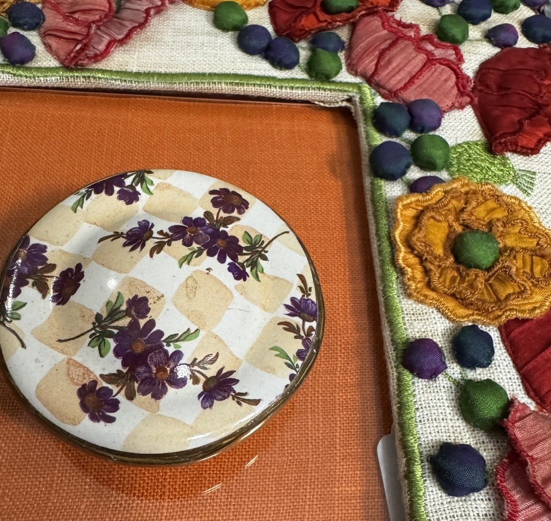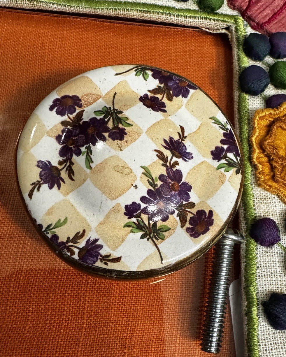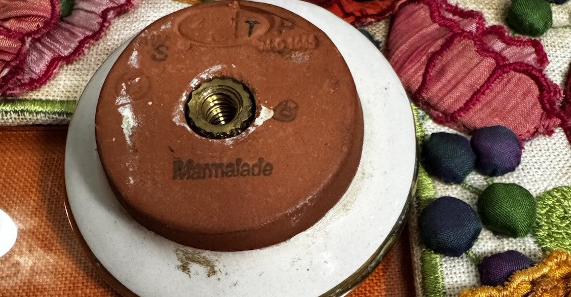 The MacKenzie-Childs Honeymoon Marmalade Orange Knob is a 2.5" round cabinet knob made of terracotta, featuring a vibrant orange color. This uniquely designed knob adds a touch of whimsy and style to any cabinet in your home. Proudly made in the United States, this product is a perfect choice for those looking to add a pop of color and personality to their kitchen or bathroom decor.