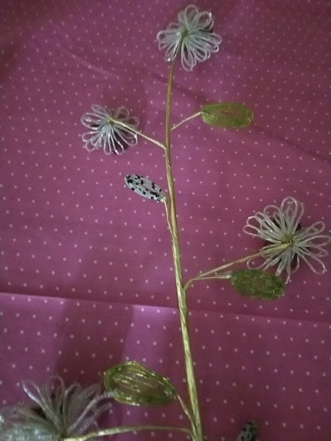 The Mackenzie Childs Pink/burgundy Beaded Flower Stem features five pink flowers on a 29" stem. The flowers are adorned with beads, adding a touch of elegance and charm to any floral arrangement or home decor display. Perfect for adding a pop of color and sophistication to your living space, this flower stem is a stylish and versatile choice for enhancing your home decor with a floral touch.