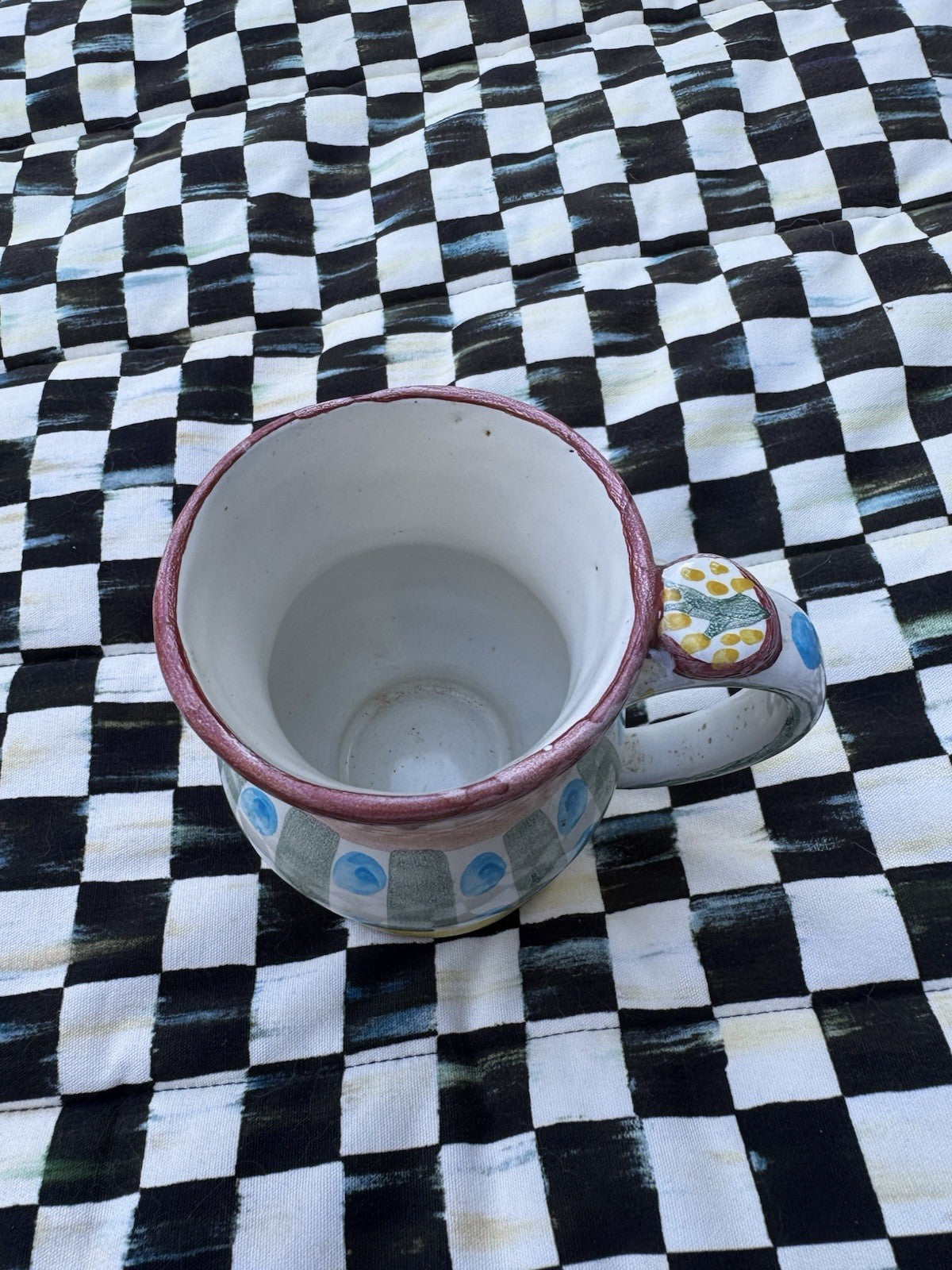 Vintage Mackenzie Childs Pottery Coffee Mug with Thumb Rest