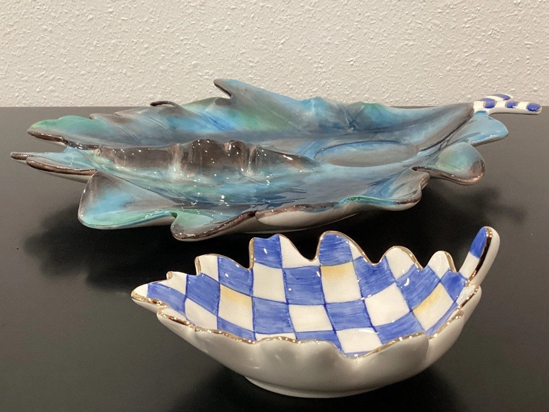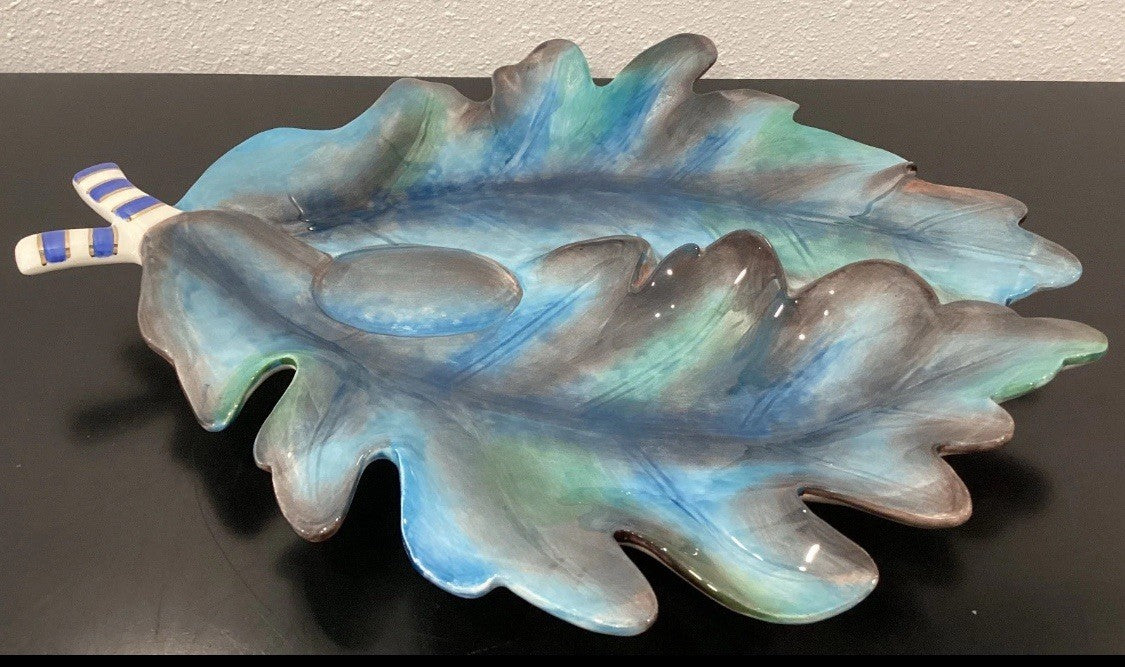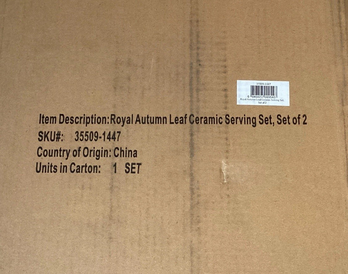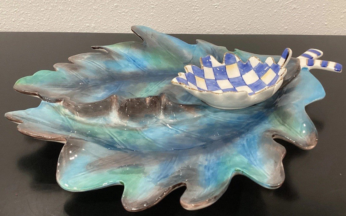 Mackenzie Childs Royal Autumn Serving Set of 2 Ceramic 3D Leaf 14.5" x 13" New