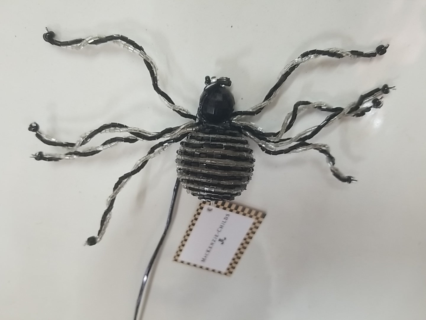 Mackenzie Childs Set Of 3. 1 Crystal 1 striper Spider Clip, 1 striped/stick