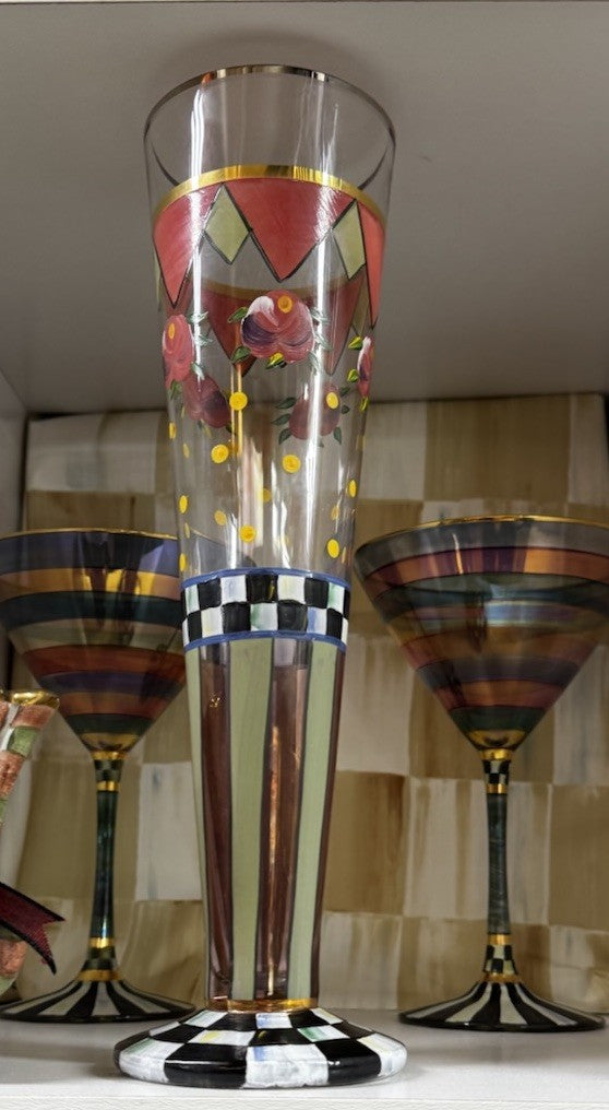 Mouth-blown, hand-painted glass with colored and gold lustre embellishment. Handcrafted in Eastern Europe.