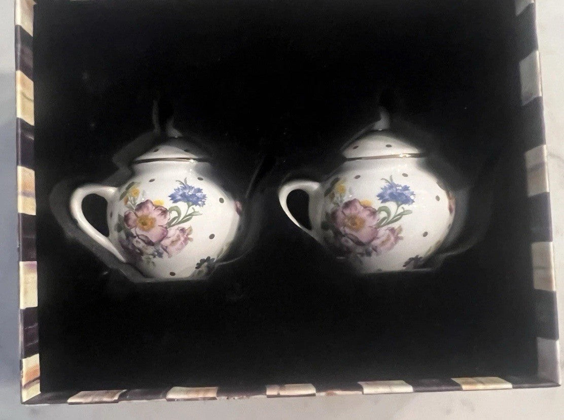 Mackenzie-Childs White Flower Market Salt and Pepper Set NIB GREAT HOLIDAY GIFT.