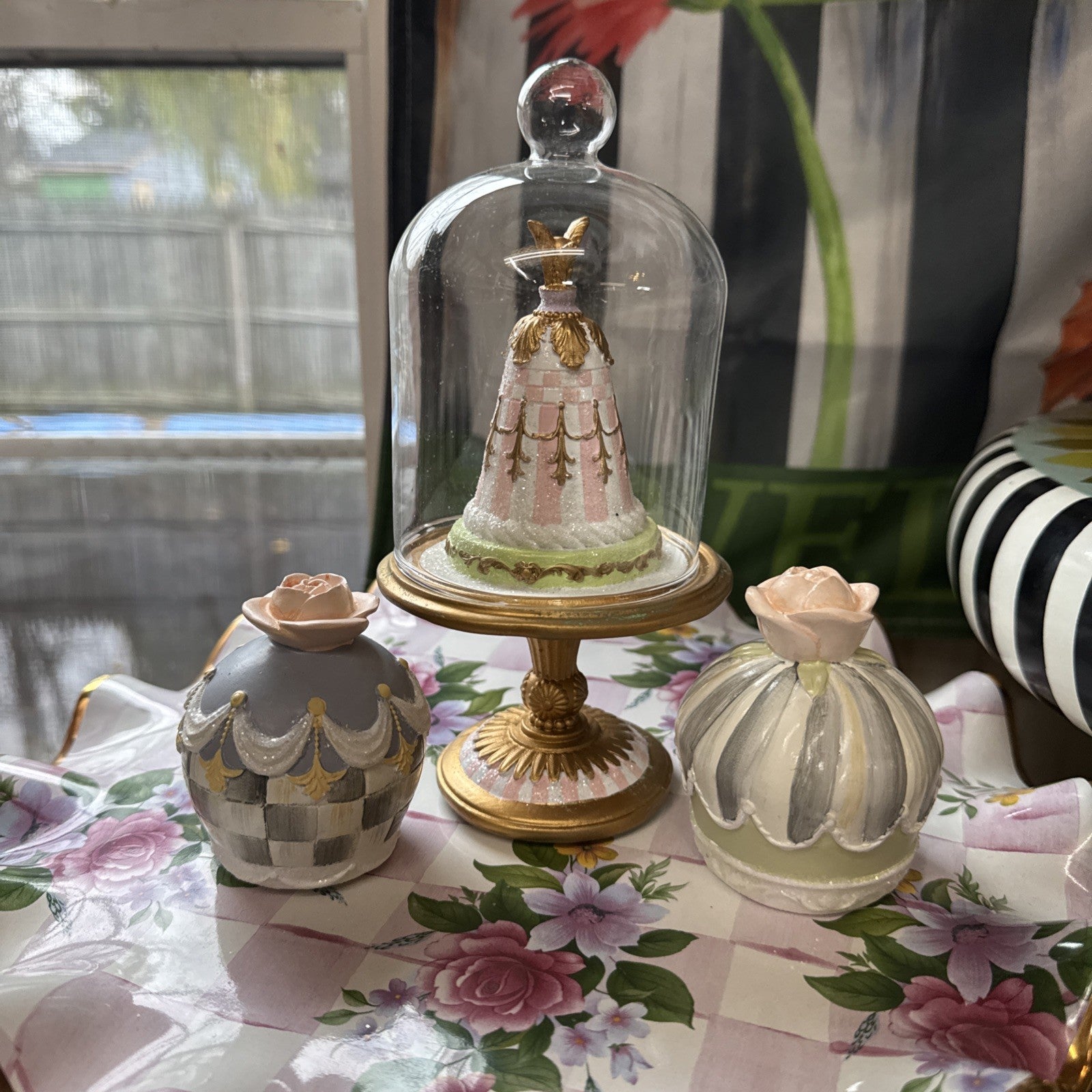 The New Mackenzie Childs Cameo Collection Petit Fours, Set of 4, is a charming set of resin figurines featuring a colorful multicolor design. Standing at 3 inches tall and 2.5 inches wide, these small figurines are perfect for any room in your home and can be used for all occasions. With a contemporary style and a matte finish, they add a touch of seasonal and holiday dessert themes to your decor. Easy to care for with spot clean instructions, these figurines from the Mackenzie-Childs brand are a delightful addition to your collection.