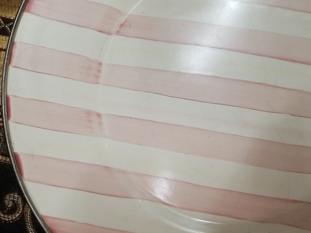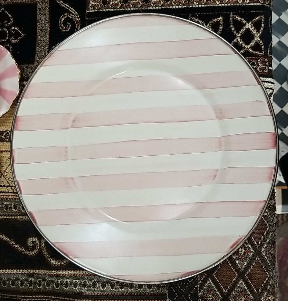 MACKENZIE CHILDS Pink Stripe Bathing Hut- PLATE 11" Enamel- One -retired