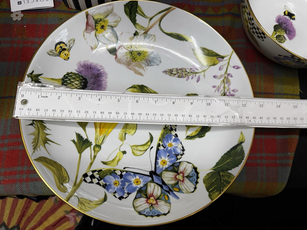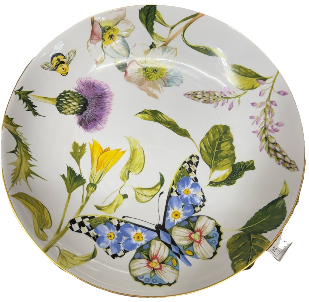 Thistle & Bee by MacKenzie-Childs porcelain Butterfly Serving Bowl 12.75"- New