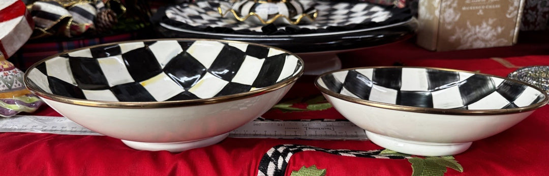 Mackenzie Childs COURTLY CHECK Enamel GOURMAND COUPE Serving Set 2 Bowls