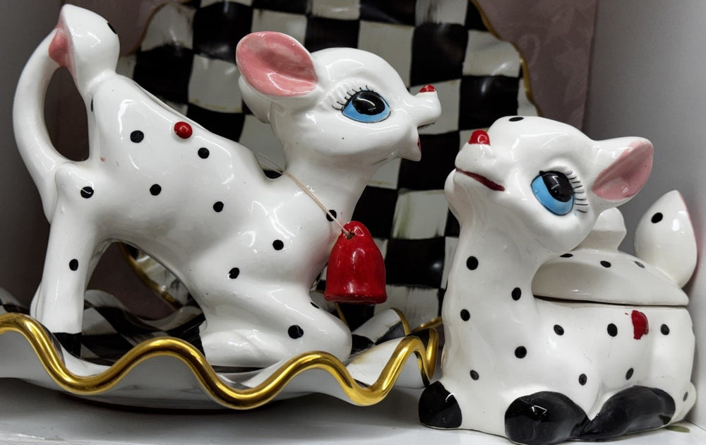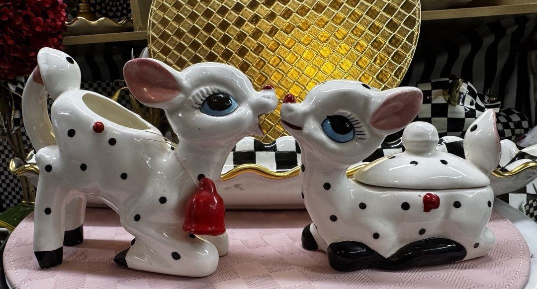 Rare VINTAGE Anthropomorphic Deer Sugar Dish With Lid & Creamer Set- Excellent