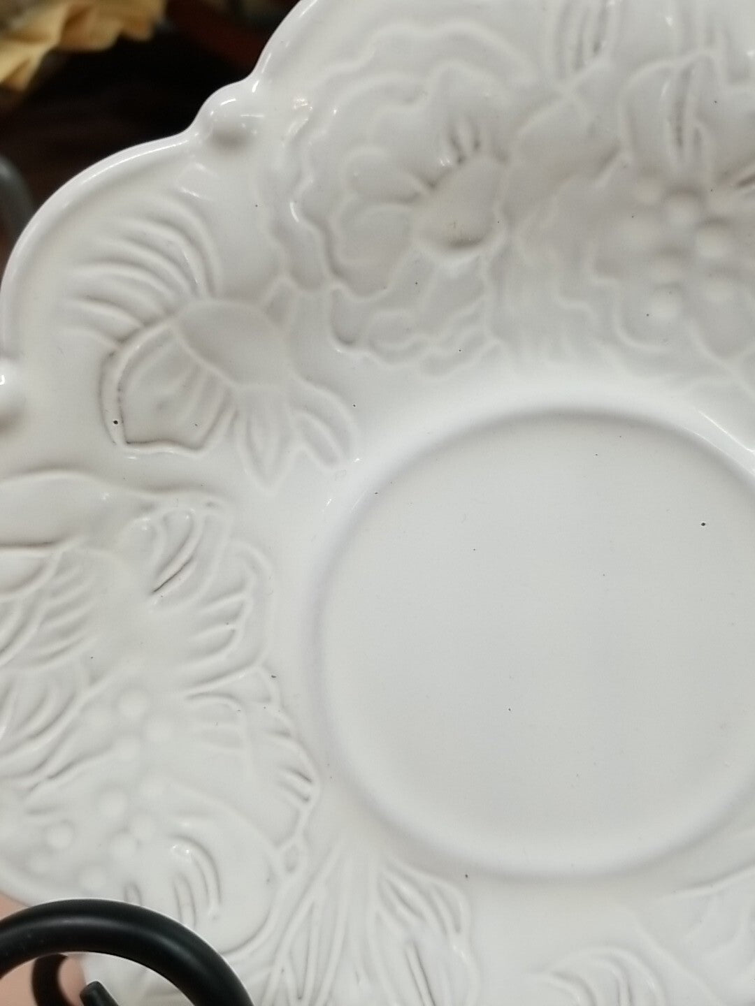 Elevate your home decor with the Mackenzie Childs SweetBriar Saucer, a testament to classic elegance and timeless design. Crafted with meticulous attention to detail, this 6-inch white ceramic saucer features the beloved SweetBriar pattern that adds a touch of sophistication to any table setting.