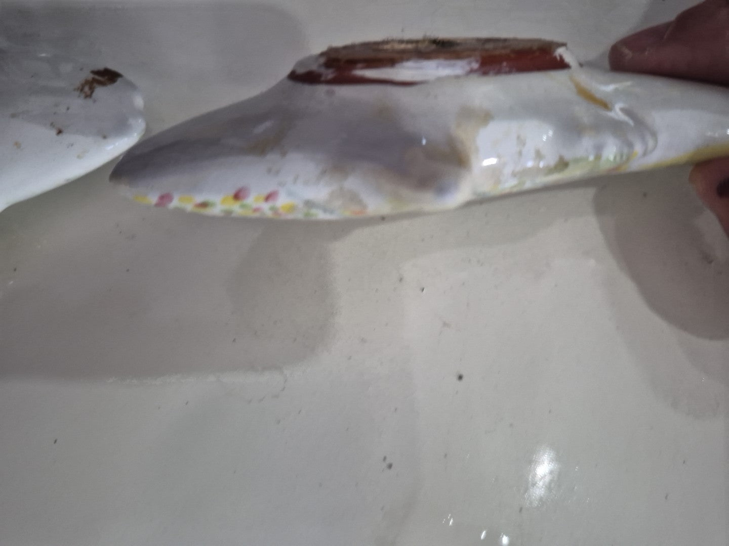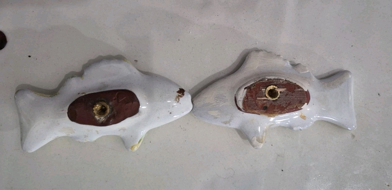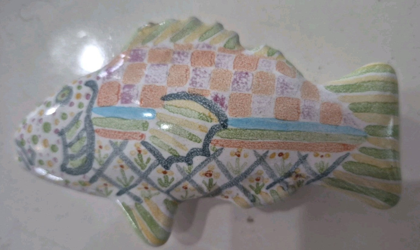 Pair Vintage MacKenzie-Childs Pottery Fish Cabinet Knobs / Drawer Pulls