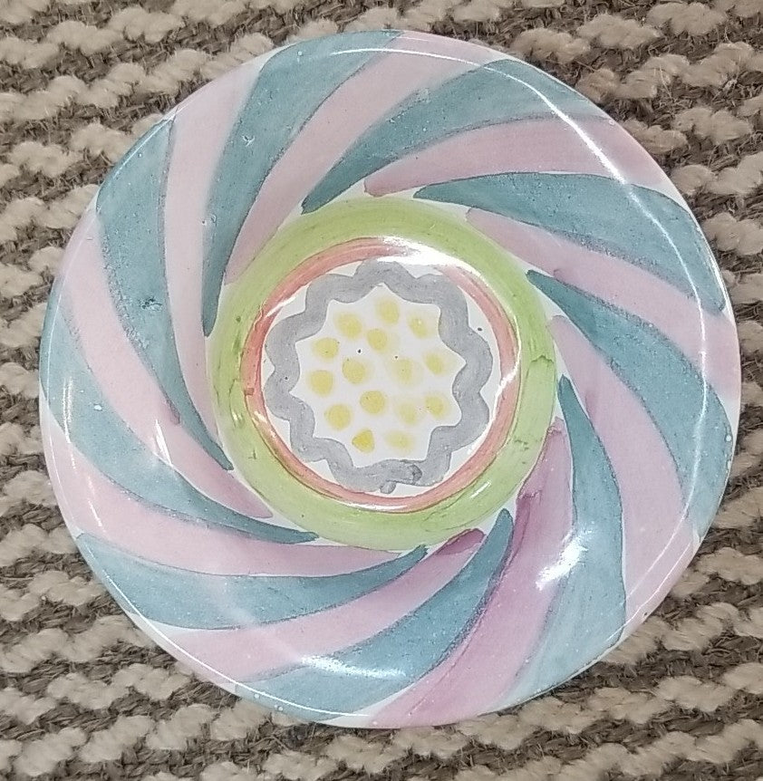 Mackenzie Childs Odd Fellows Hand Painted Ceramic Groovy Canister Lid Only