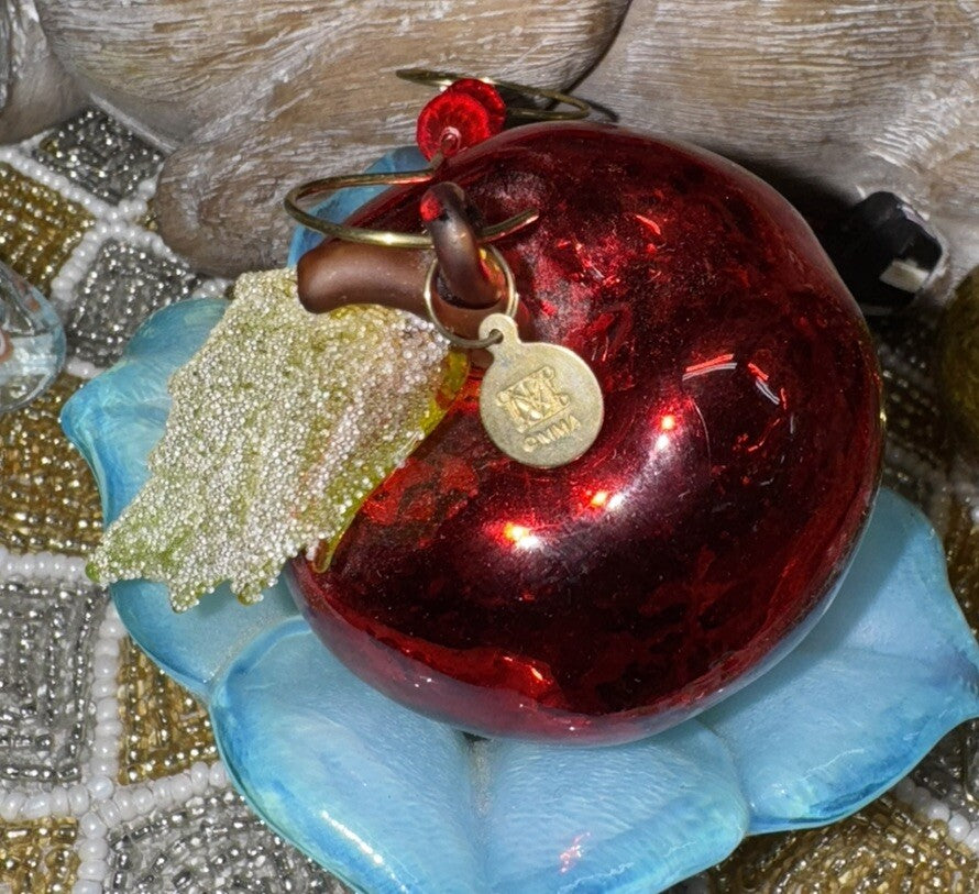 Vintage MMA Metropolitan Museum Of Art Christmas Ornament Hand Blown Glass Apple