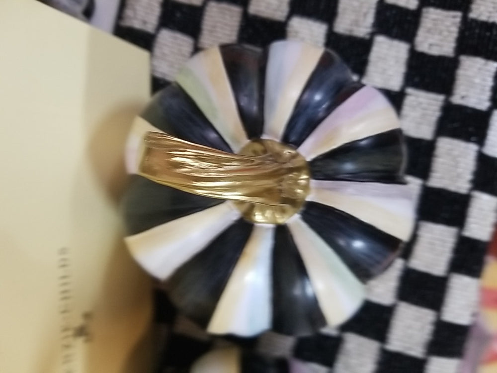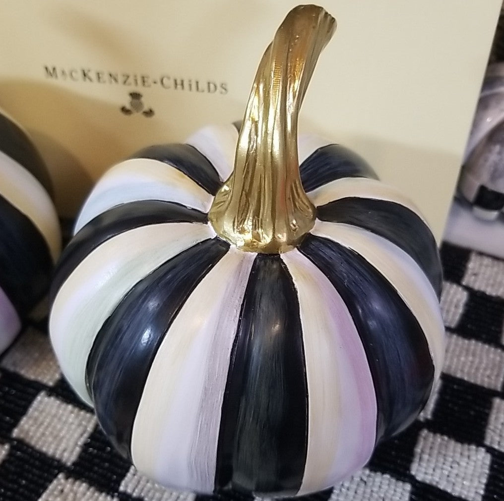 Mackenzie Childs Courtly Striped Mini Pumpkin- Black And White- New