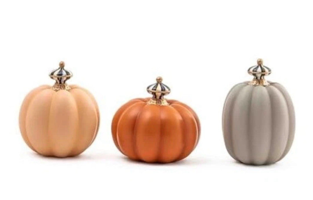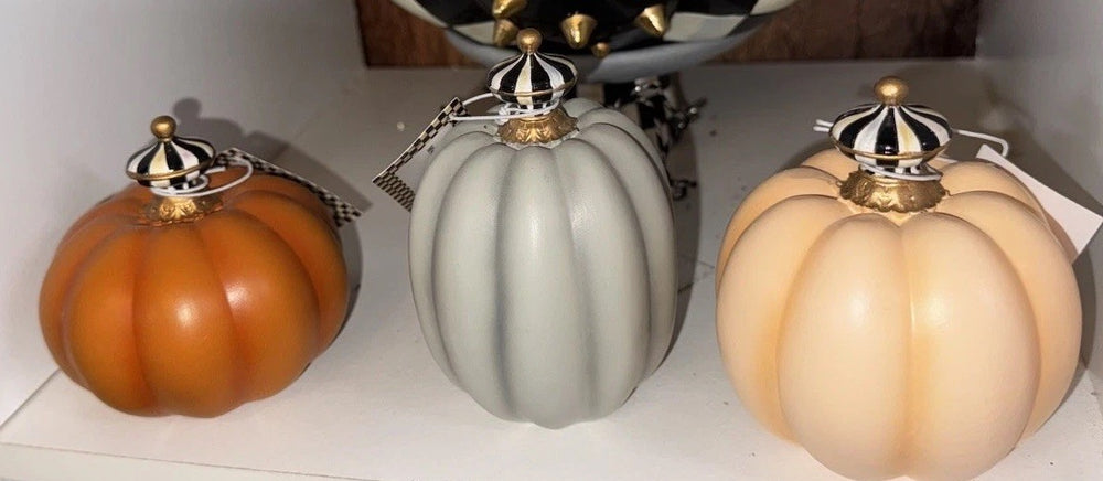 NEW Mackenzie Childs COURTLY CHECK MARBLED MINI PUMPKINS - SET of 3