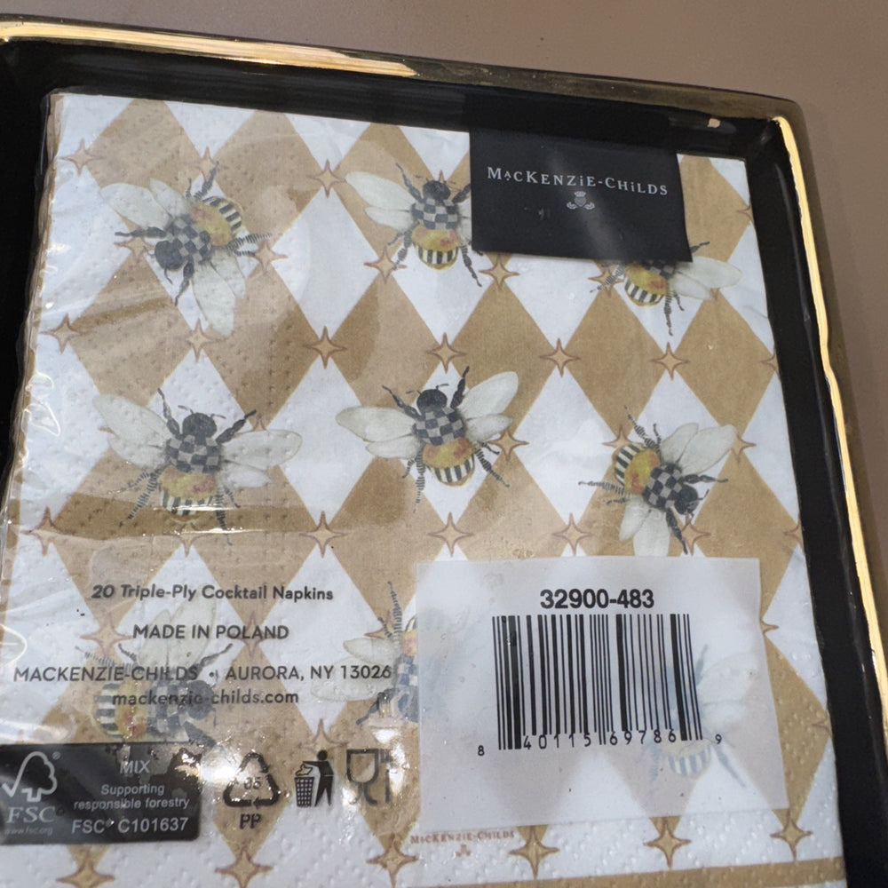 Mackenzie Childs Mocha Bee Harlequin Paper Cocktail Napkins 1 20 pack, NEW