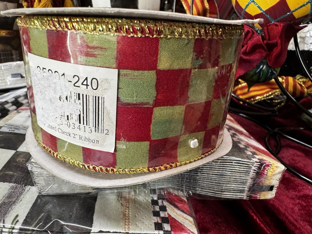 MacKenzie Childs 1 Roll Courtly Check Wired Ribbon Red 2” wide-10yards Roll