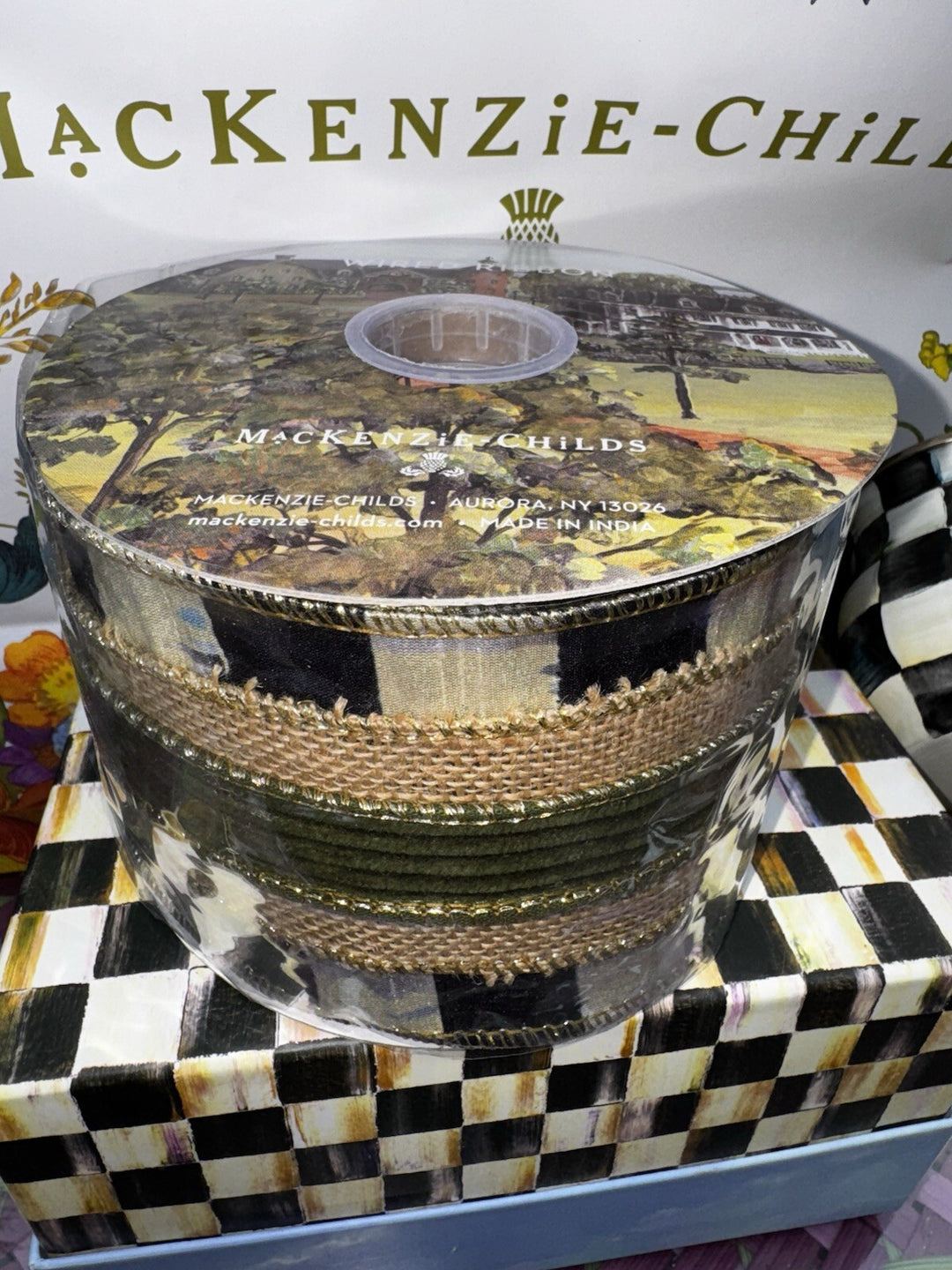 MacKenzie Childs Orchard Check 2” Wired Ribbon Brand New 10 Yards RETIRED