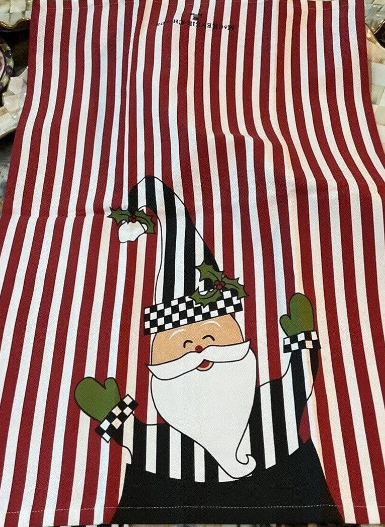 MacKenzie Childs One JOLLY SANTA RED stripes DISH Or Tea TOWEL NEW