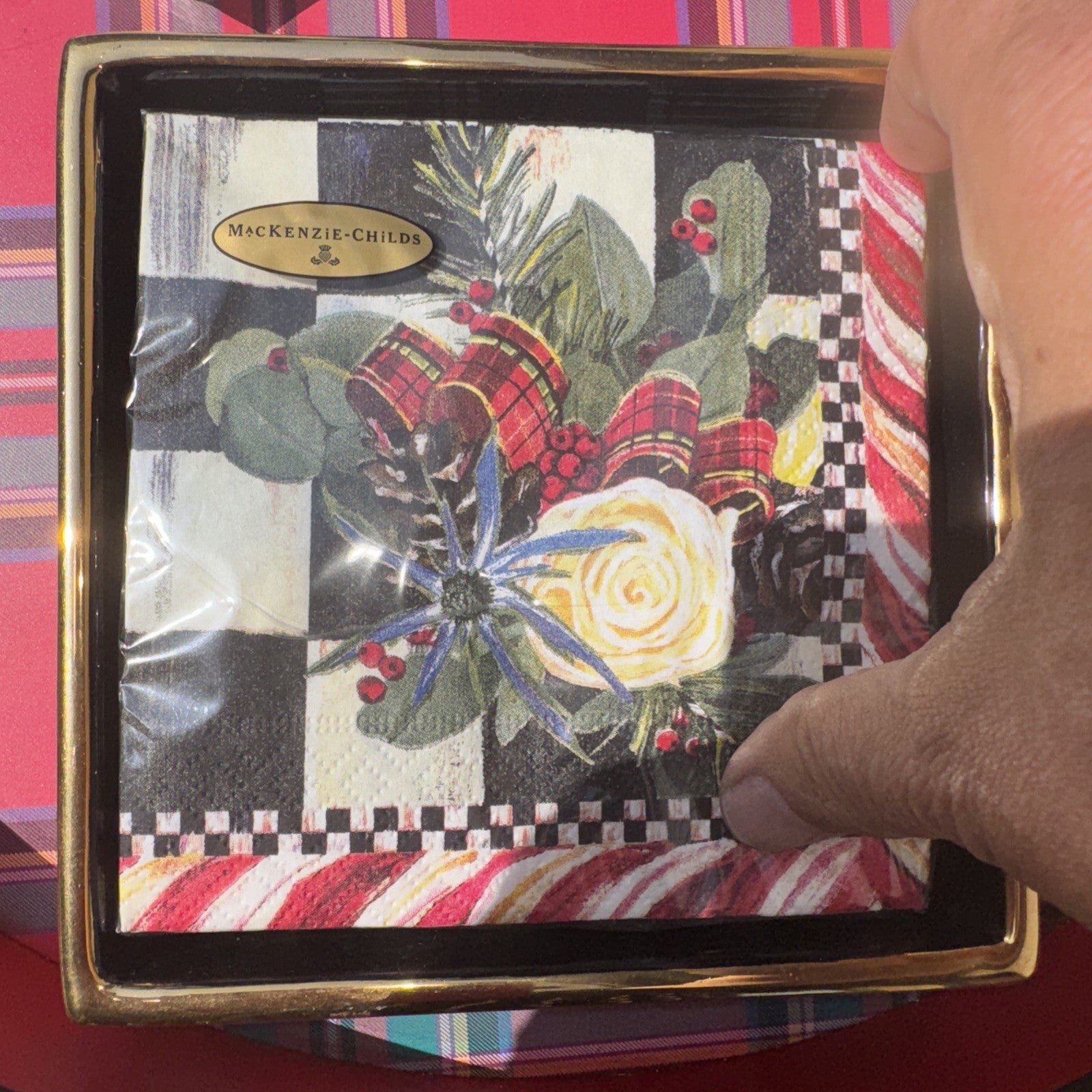 Mackenzie Childs Scottish Bouquet Holiday Cocktail Napkins 1 Pack 20 pack, NEW