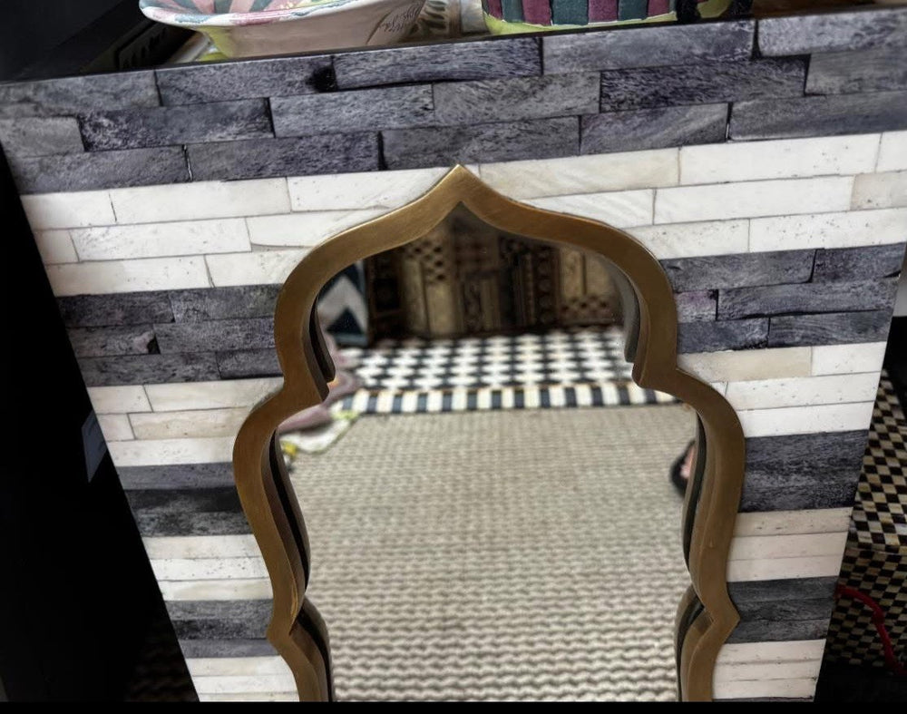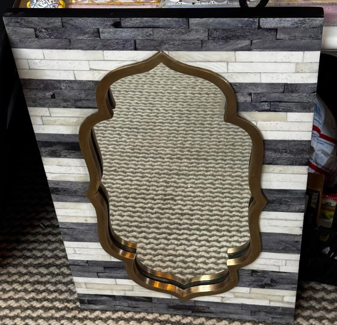 Mackenzie Childs Tigris Accent Wall Mirror 12” X20” Bone Inlay And Brass