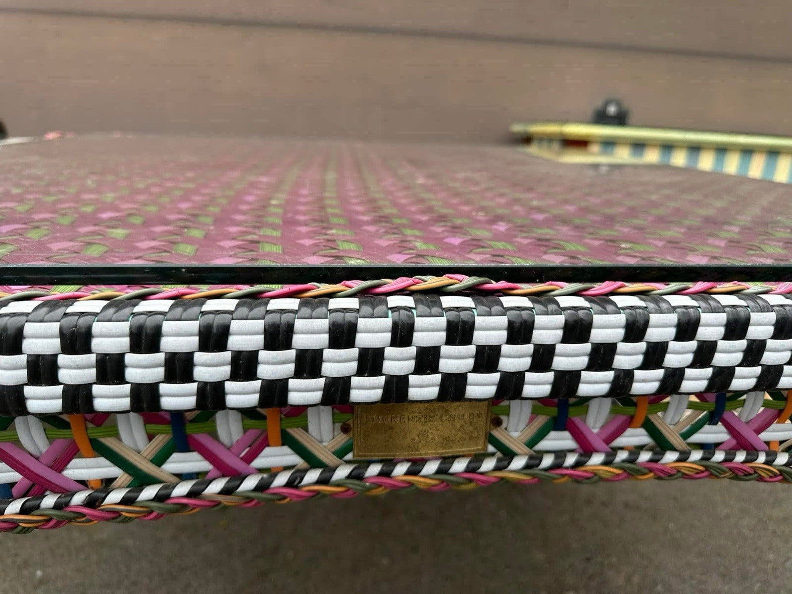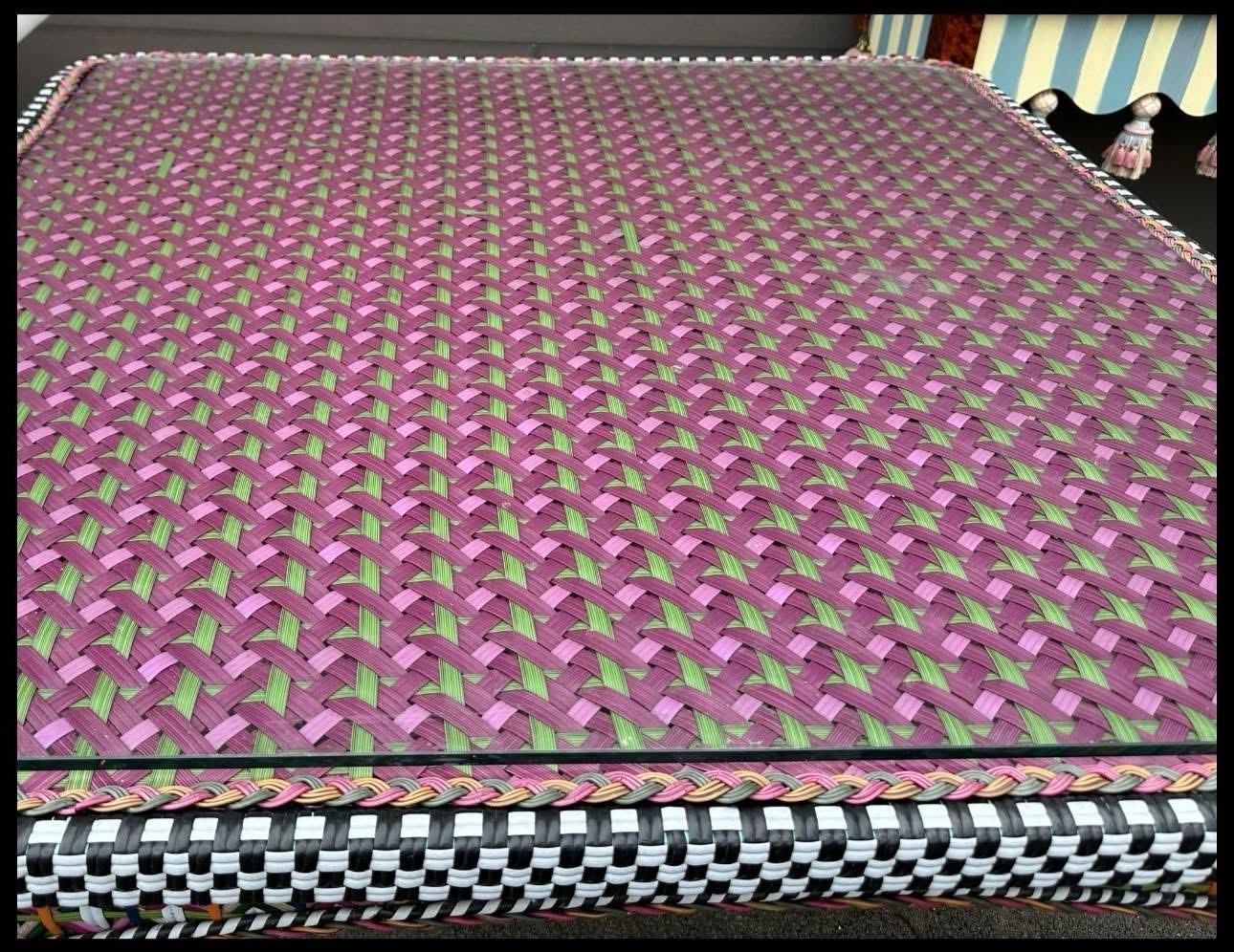 Materials: Hand Woven Resin Wicker and Powder Coated Metal accents, on a solid iron frame. Pieces may vary due to the handmade nature of each product