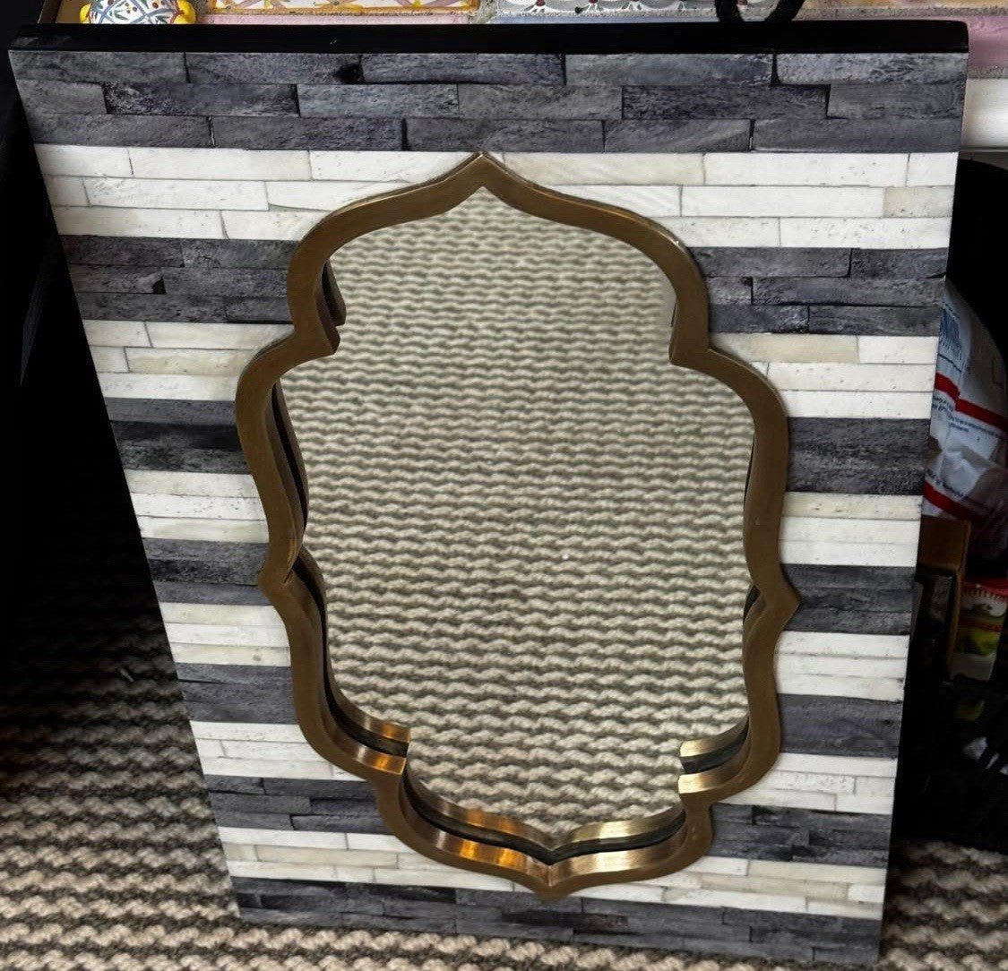 Tigris Accent Wall Mirror reflects your style with a medley of bone-and-horn patterns, framing a quatrefoil mirror, trimmed in hand-hammered brass.