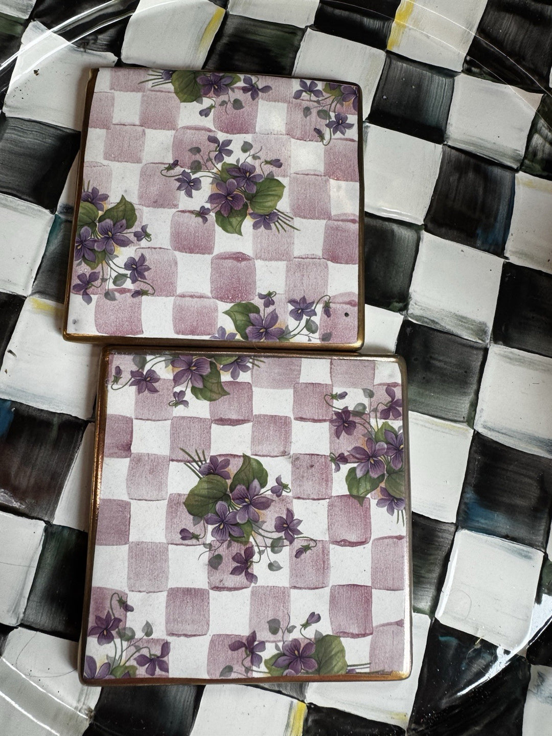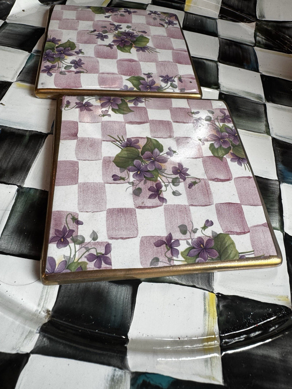 MACKENZIE CHILDS Set 4 Garden path Coasters Corkback Sealed- New