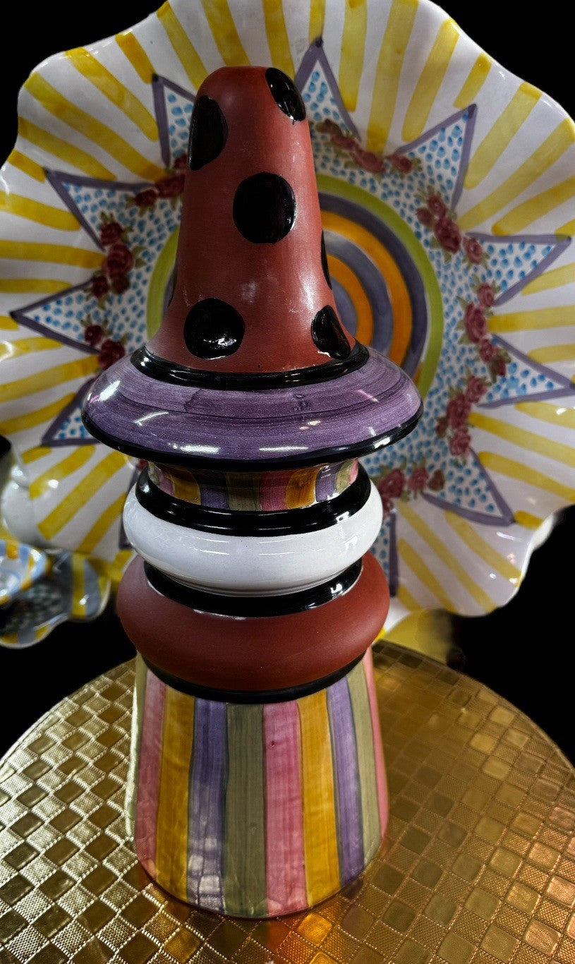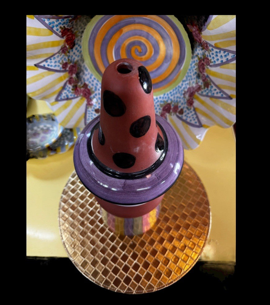 MacKenzie Childs Component Tuffet Ottoman Ceramic Leg- Garden Ceramic With Hole