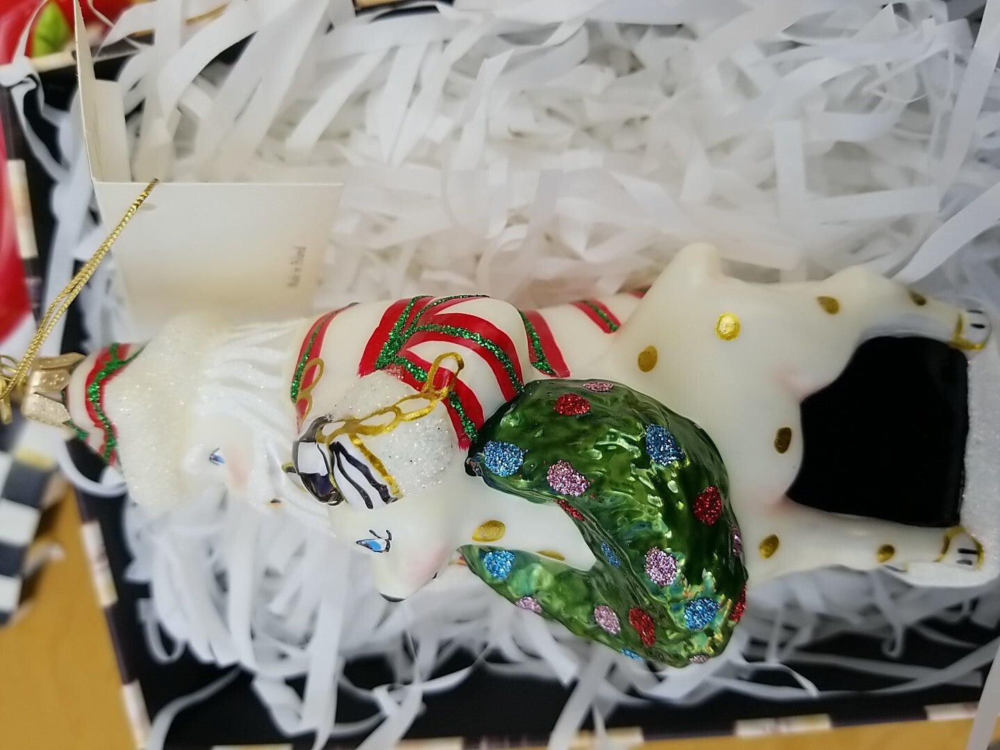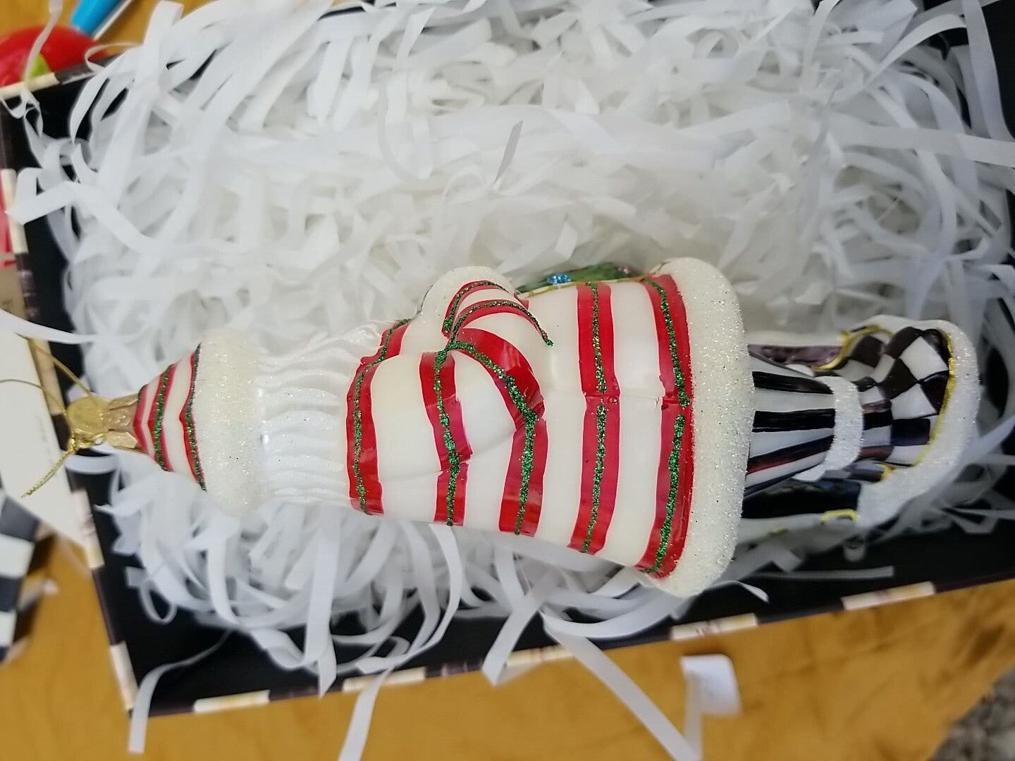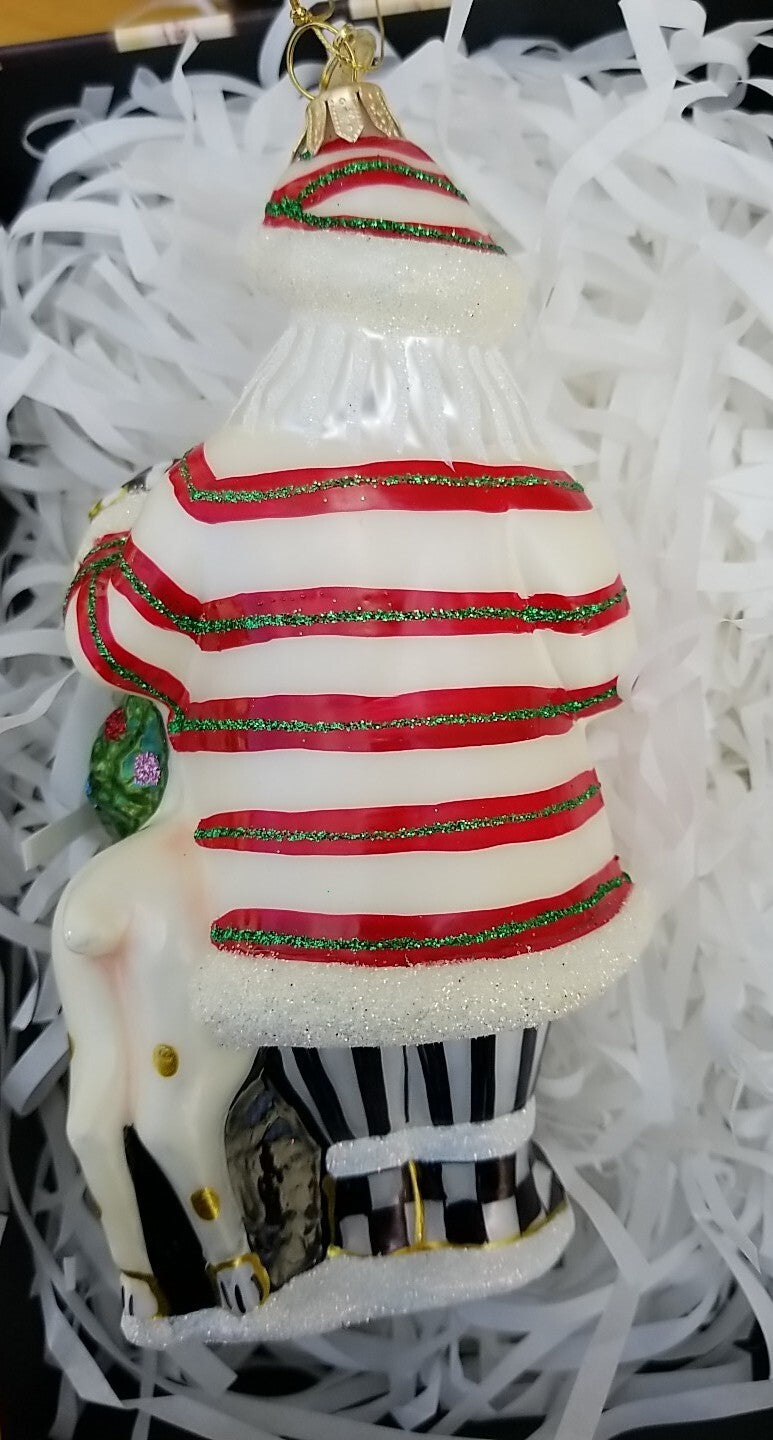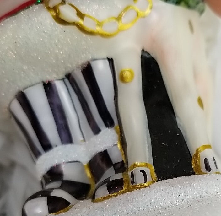 Add a touch of charm to your Christmas decor with this beautiful glass ornament from MacKenzie-Childs. Featuring a festive design of Santa and a friend, this 3.5"W x 6.75"H ornament is perfect for any Christmas occasion. Made in Poland and crafted with care, this spot clean ornament is a must-have for any collector. The high-quality glass material adds a touch of elegance and beauty to any holiday display.
