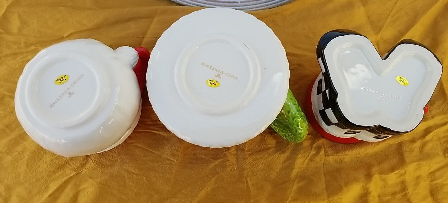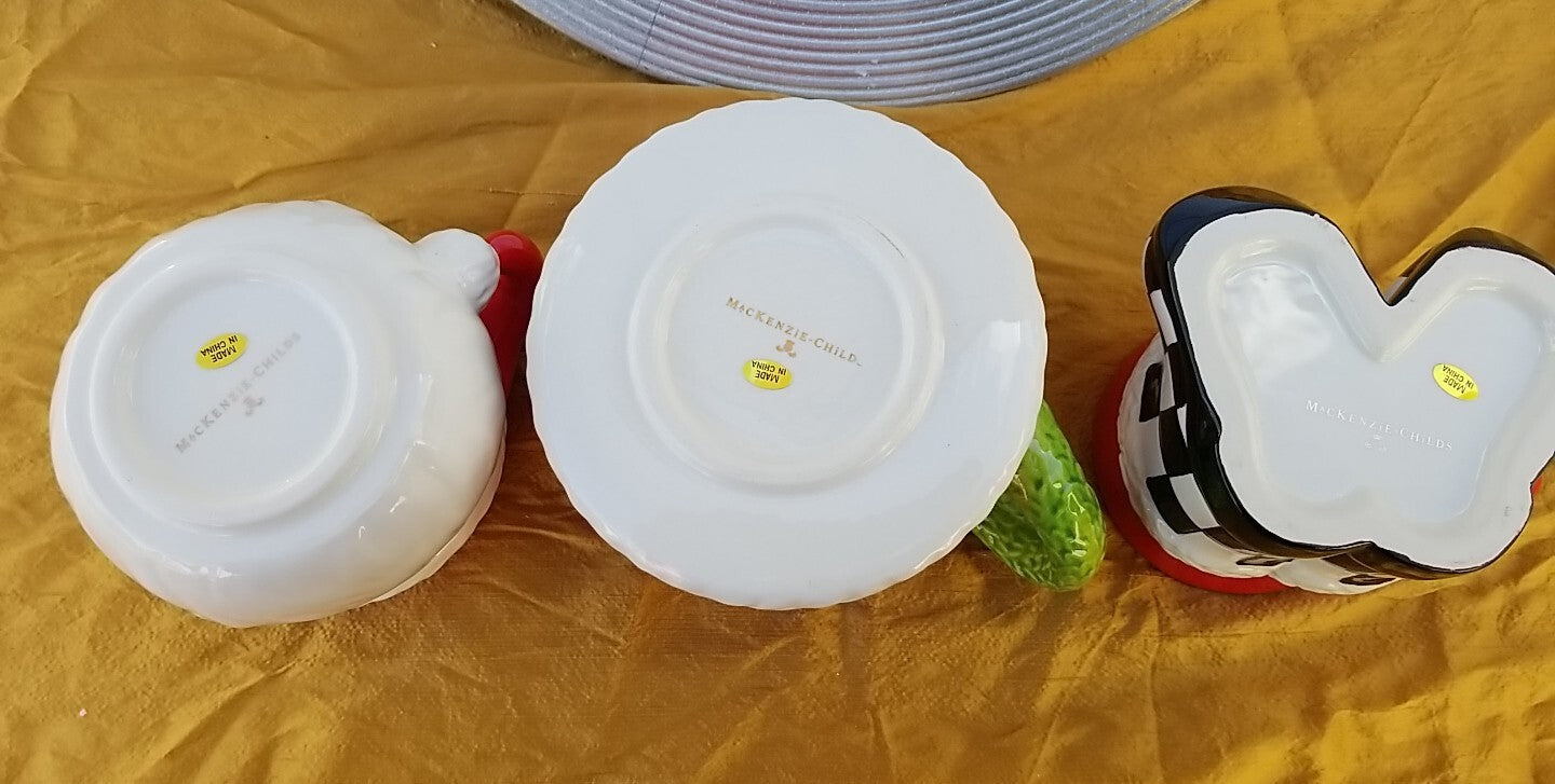 This SET OF THREE MUGS from MacKenzie-Childs is a perfect addition to your collection. The colorful design and intricate details make them a great conversation starter. The set includes three mugs, perfect for enjoying your favorite hot beverage. The brand is known for their unique and playful designs, making these mugs a great gift for any collector or lover of all things whimsical. Add them to your kitchen or display them in your home, they are sure to bring a smile to your face every time you see them.