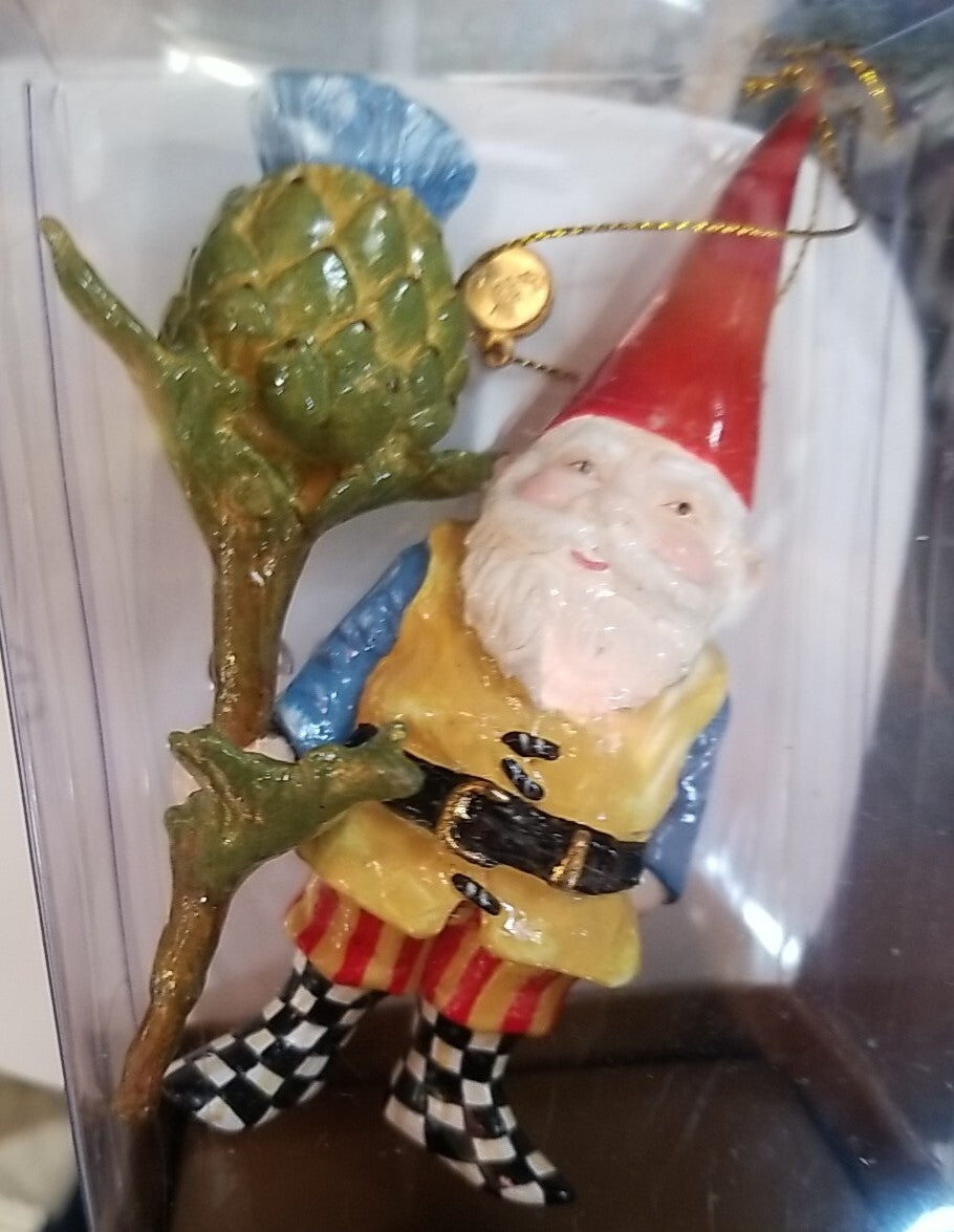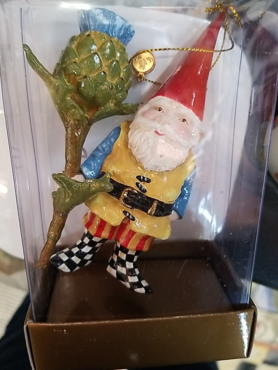 This antique-inspired ornament is perfect for collectors and enthusiasts alike, with its intricate details and charming design. The gnome is part of the MacKenzie-Childs brand and is sure to become a cherished addition to your collection. Whether you're looking to add to your ornament collection or simply want to add a unique touch to your holiday decor, this gnome ornament is a must-have.
