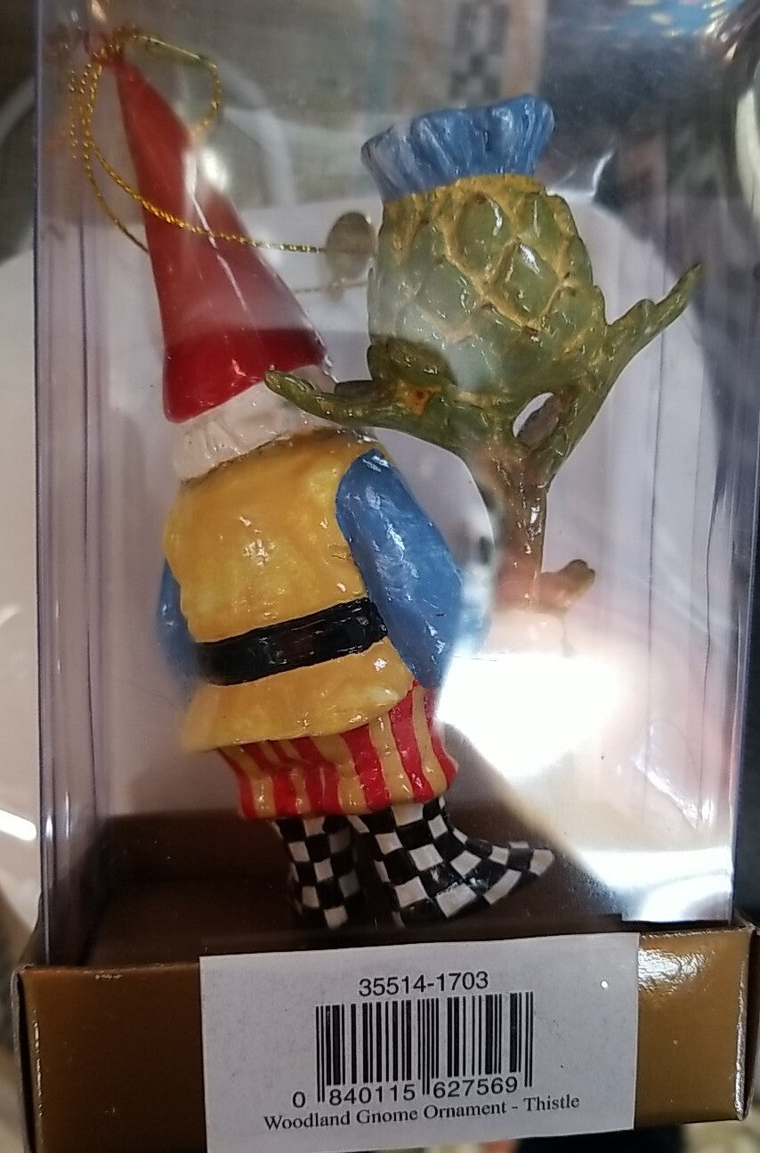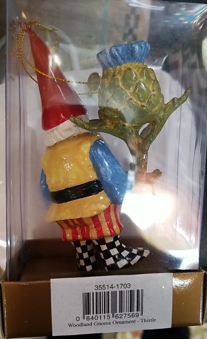 Add a touch of whimsy to your Christmas tree with this beautiful Mackenzie-Childs Woodland Gnome ornament. The gnome is crafted from high-quality resin and features a stunning thistle pattern in multicolor. The ornament measures 5 inches in height and 3 inches in width, making it the perfect size for hanging on your tree or in your collection of ornaments.