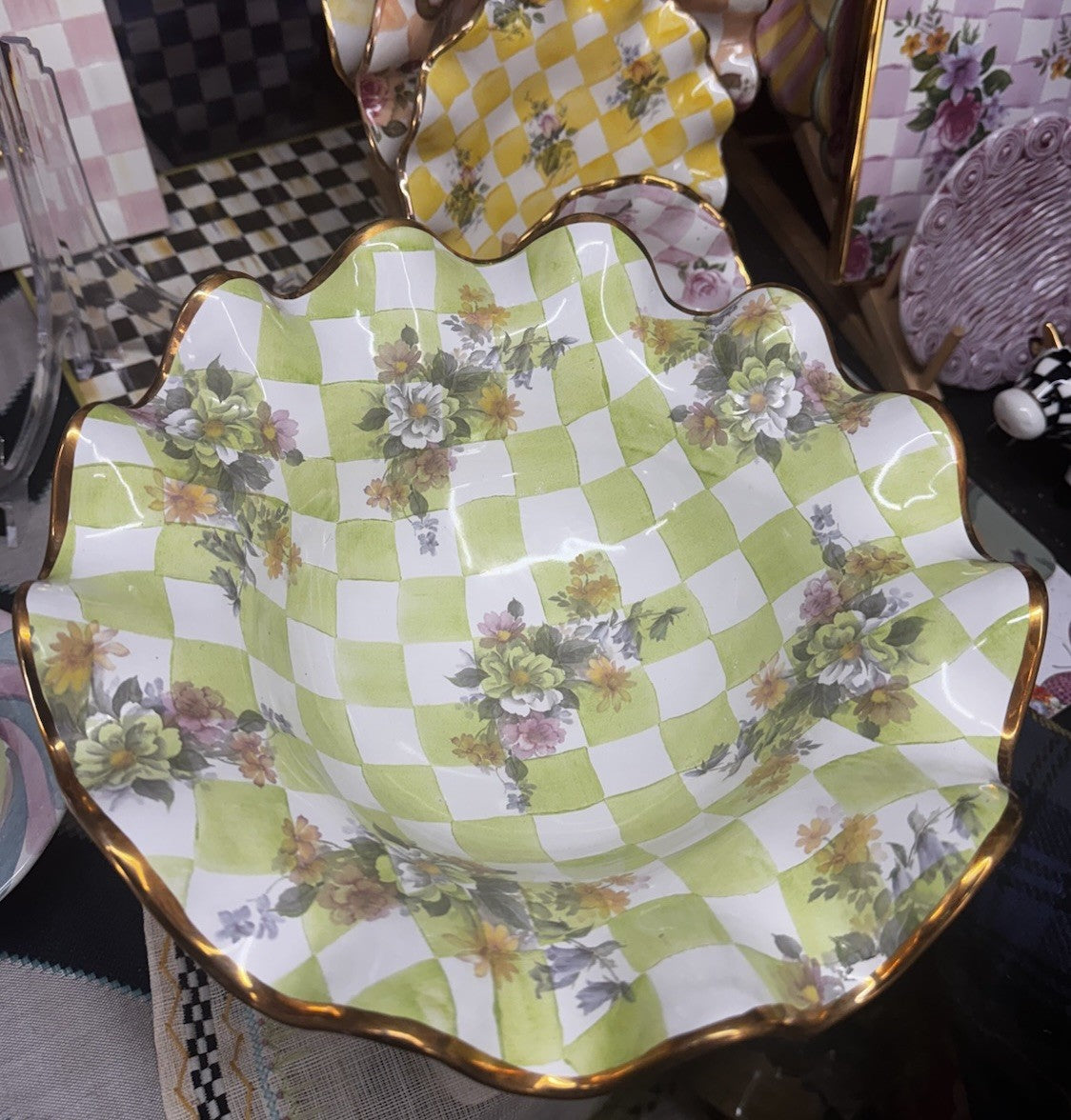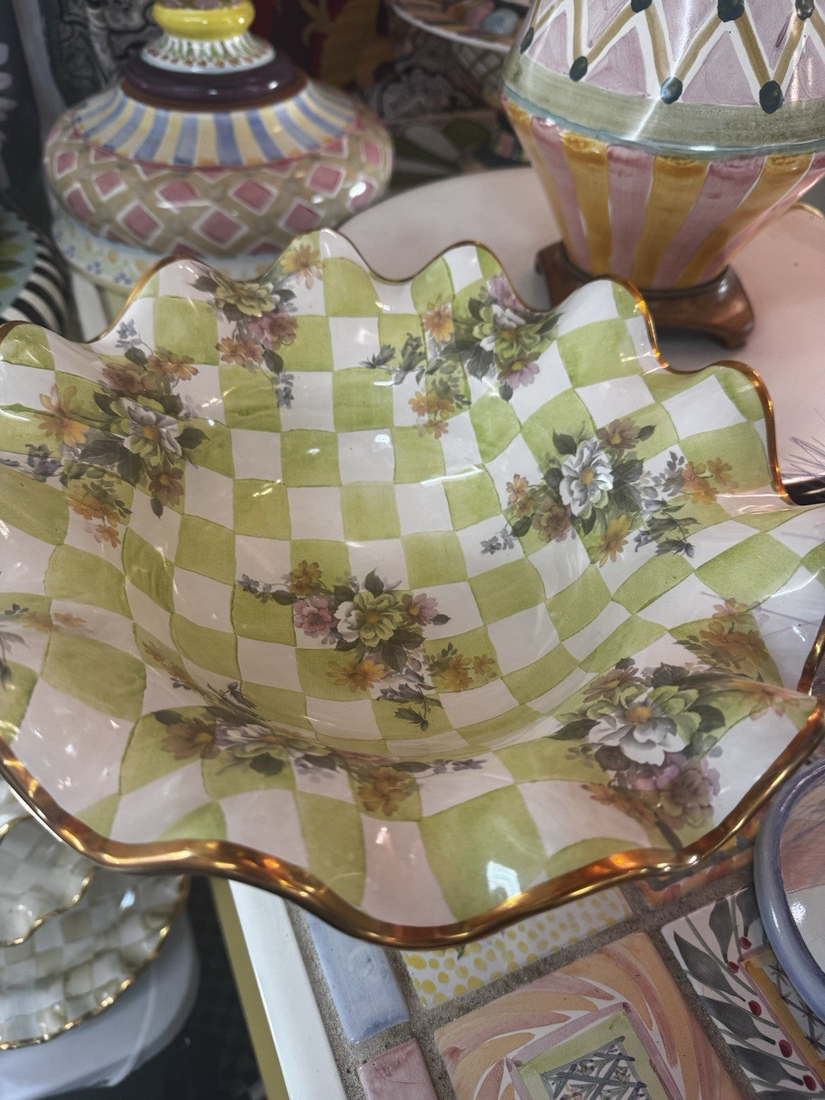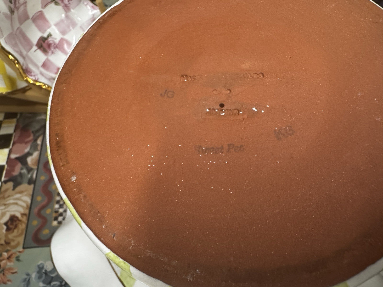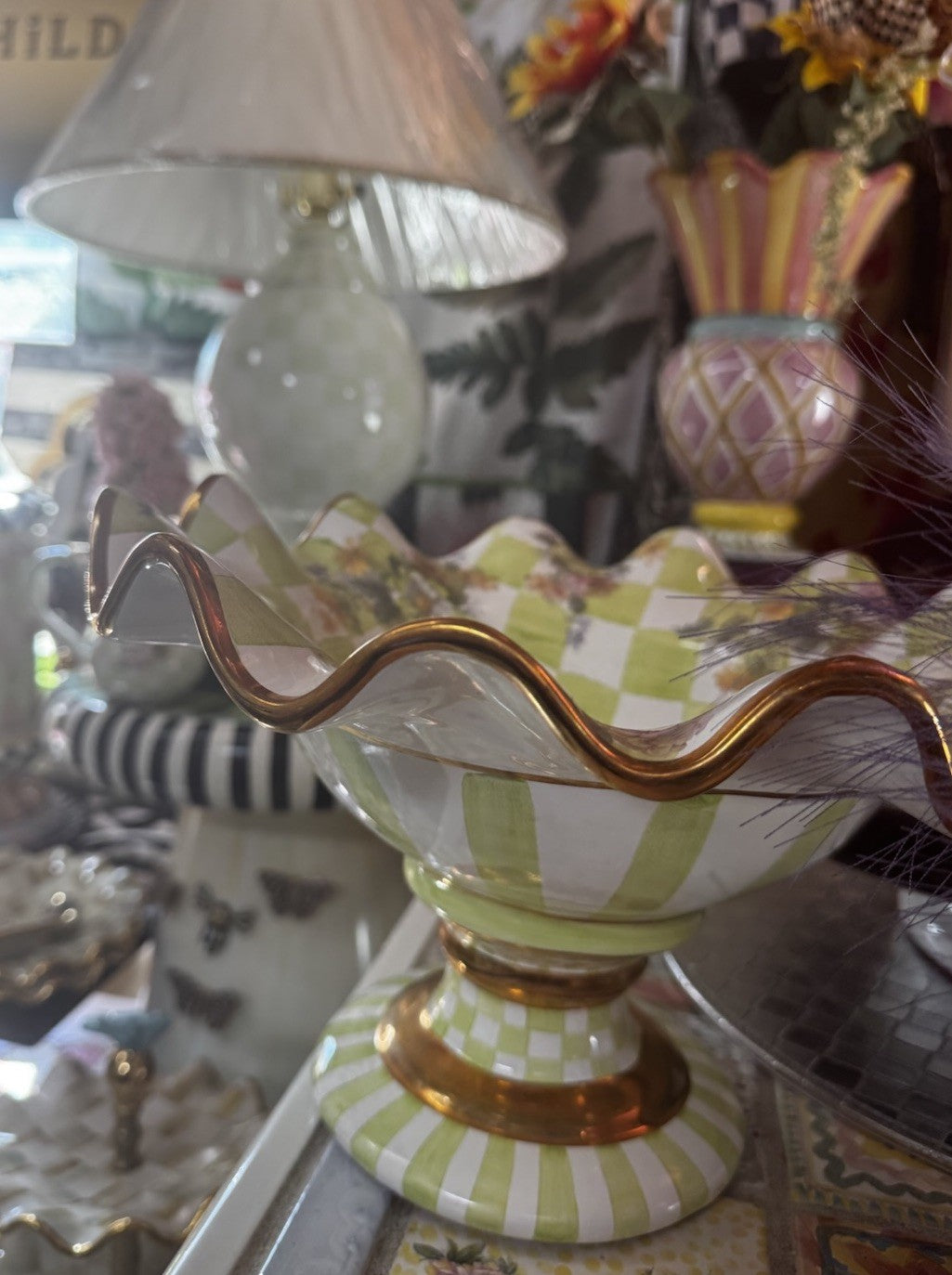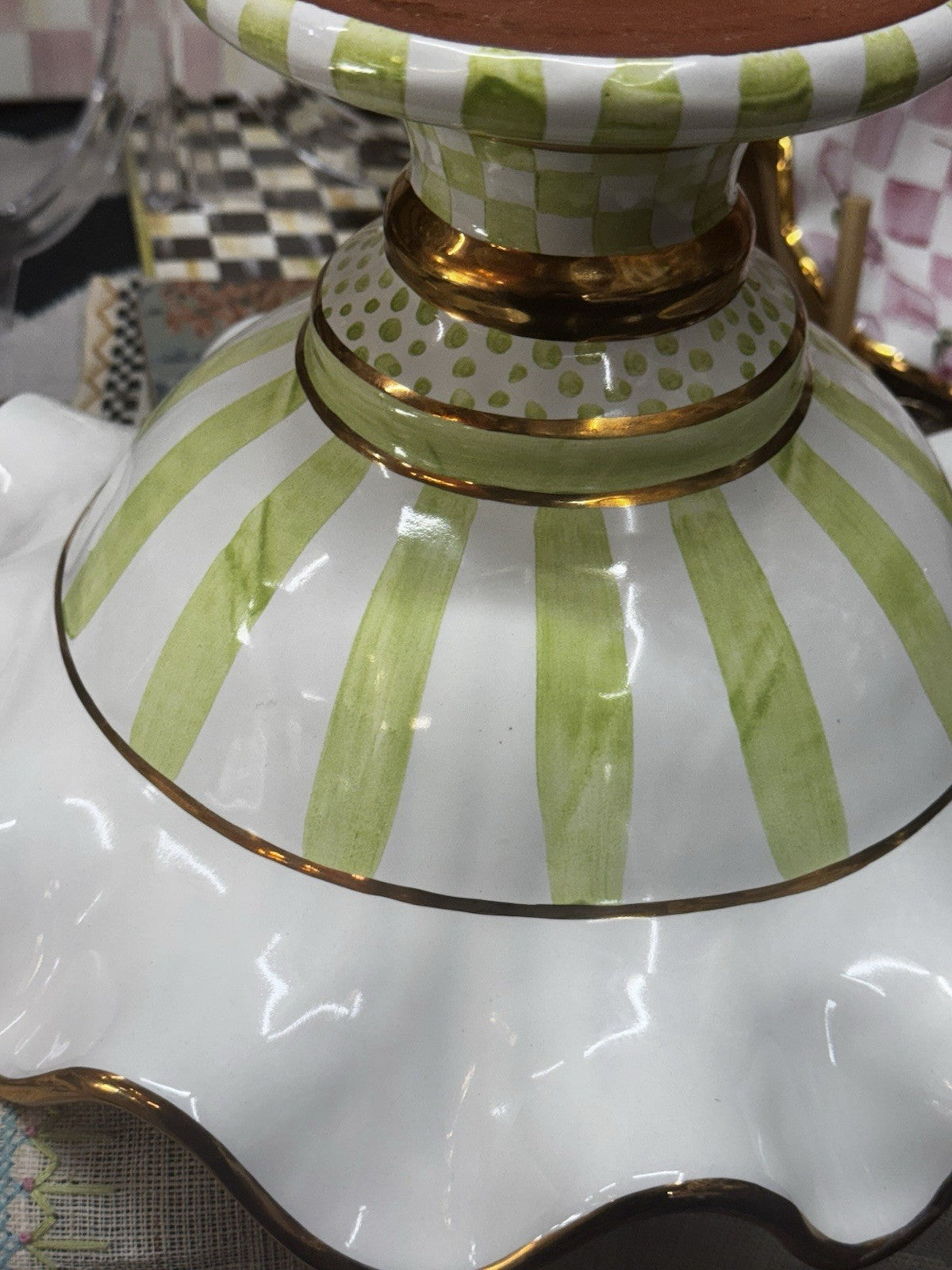 Mackenzie Childs Green Sweet Pea Honeymoon Ceramic Compote Retired 2003