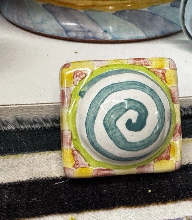 Mackenzie Childs Majolica HARLEQUIN Pottery Round One Knob 2.25 Diameter