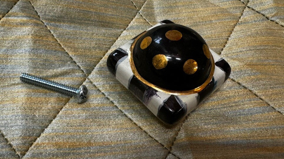 Mackenzie Childs 1.5” Petite Courtly Check And Gold Square Knob-new With Hw