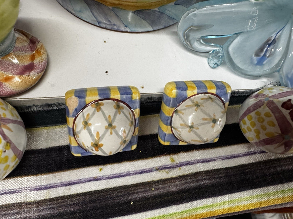 Mackenzie Childs Majolica 1.5 ” Swoop Multicolor Set Of 2 Knobs Pulls +Hardware