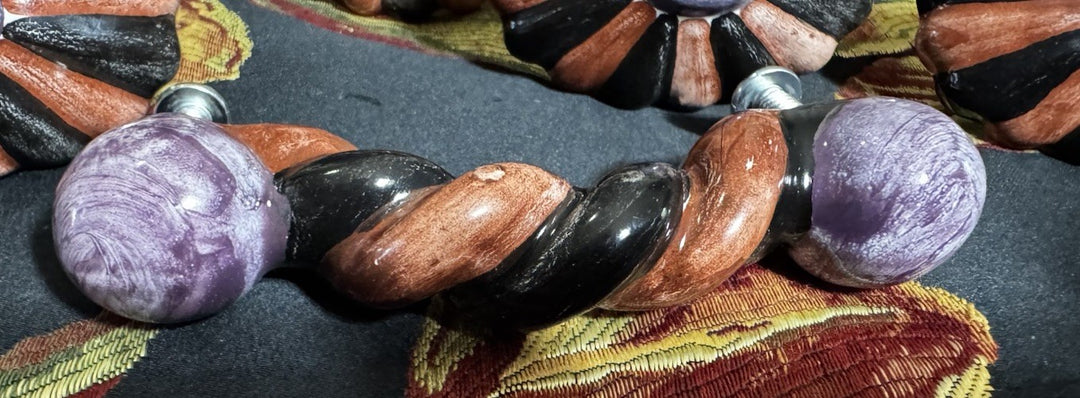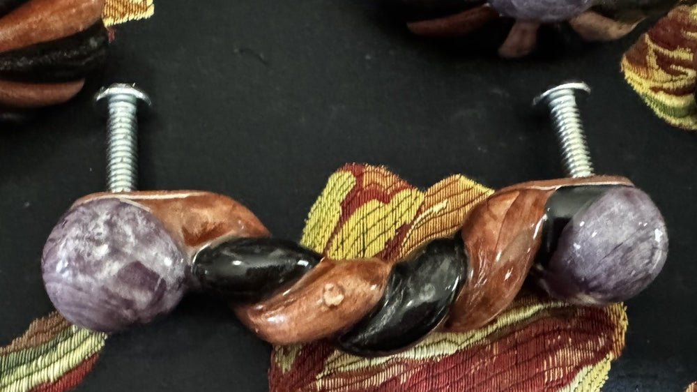 Mackenzie Childs 4” Twist Ceramic Handle Pull Knob Purple Brown Black