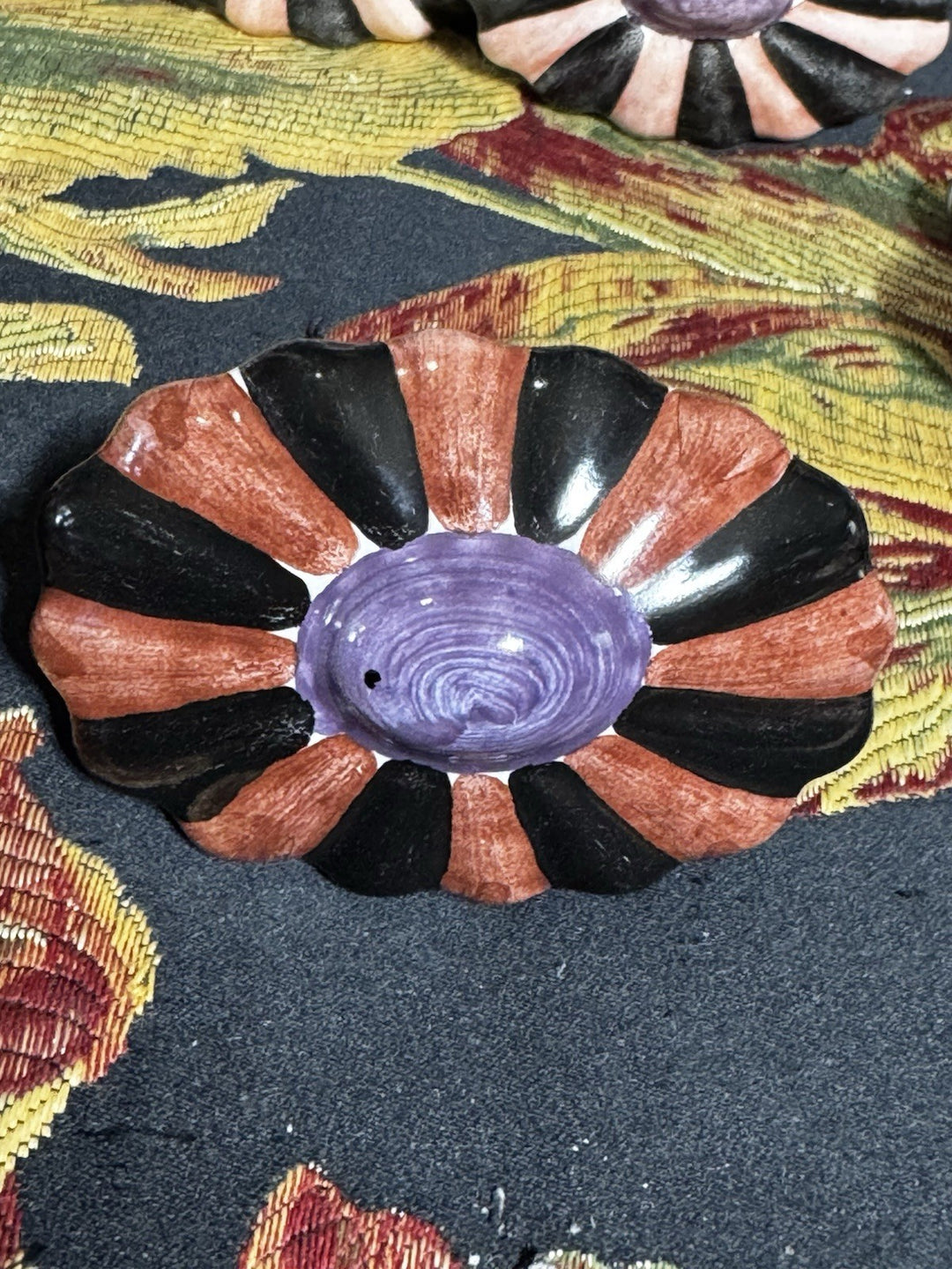 MacKenzie Childs Ribbed Majolica Cabinet Pulls 2-Knob- Orange, Black And Purple