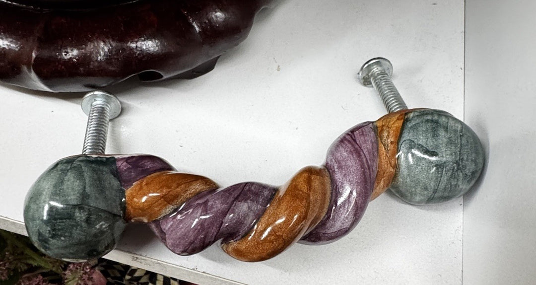 Mackenzie Childs 4” Twist Ceramic Handle Pull Knob Purple Orange Turquoise