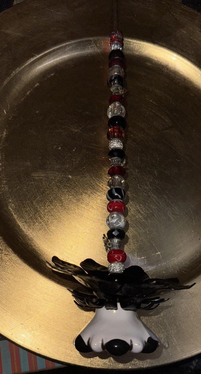 MacKenzie Childs-2” Black And White Flower Knob-on Metal Flower Beaded Stake