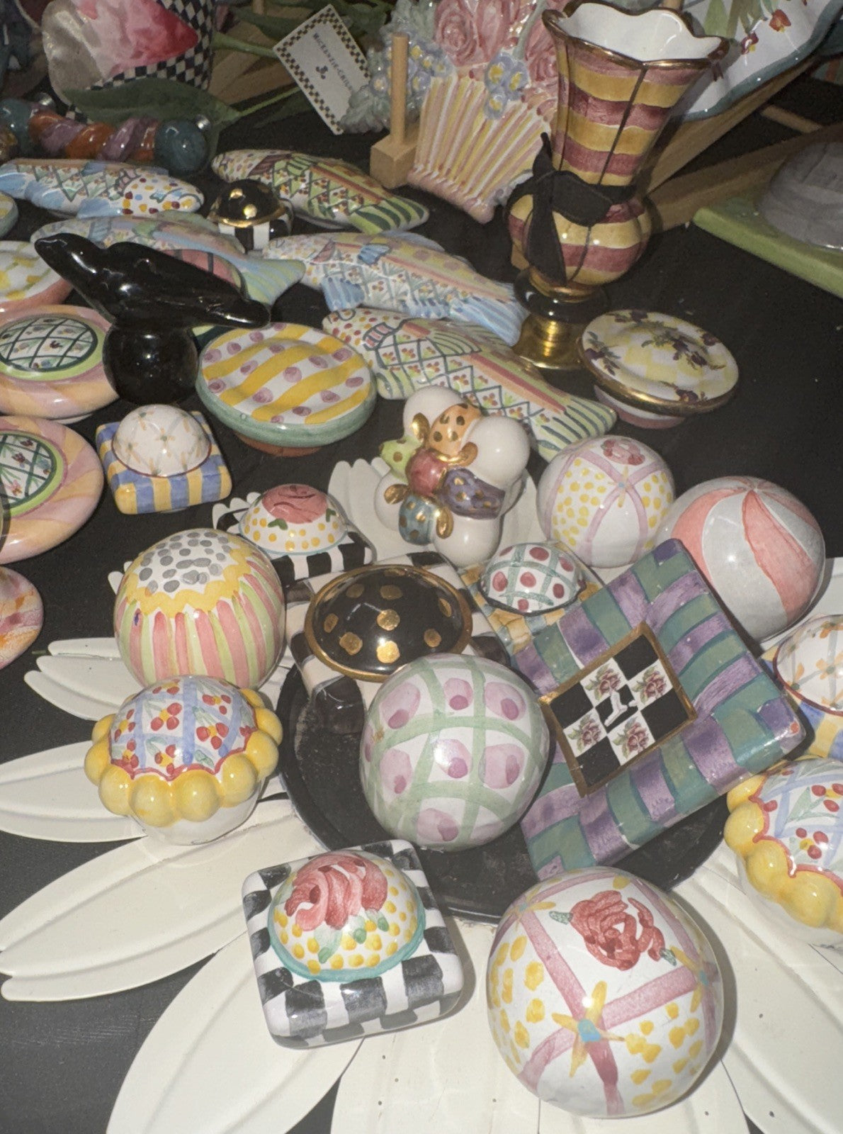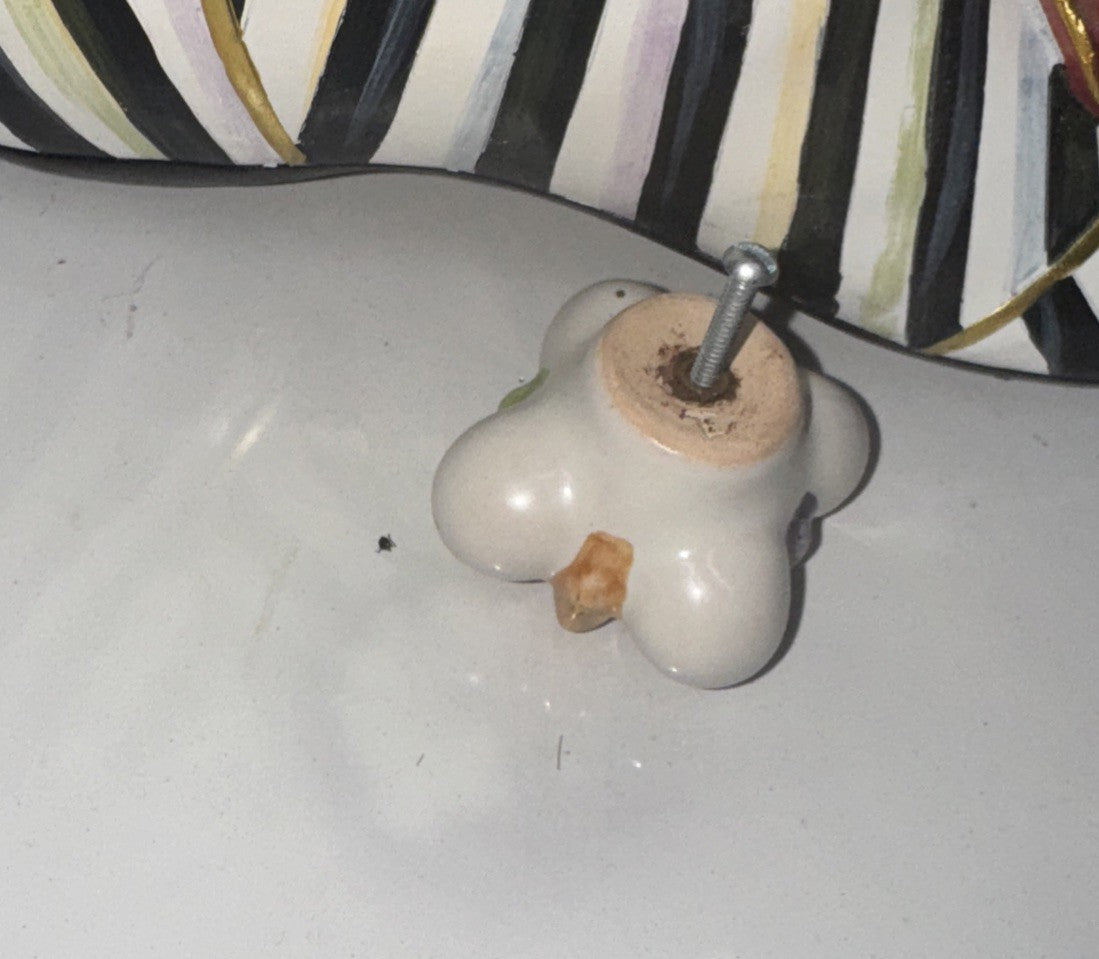 The Mackenzie Childs Crown Jewel Knob is a rare and unique addition to any home decor. This multicolored cabinet knob, measuring 2 inches in width, adds a touch of whimsy and sophistication to any cabinet or drawer. With its eye-catching design and brand reputation, this knob is sure to make a statement in any room.