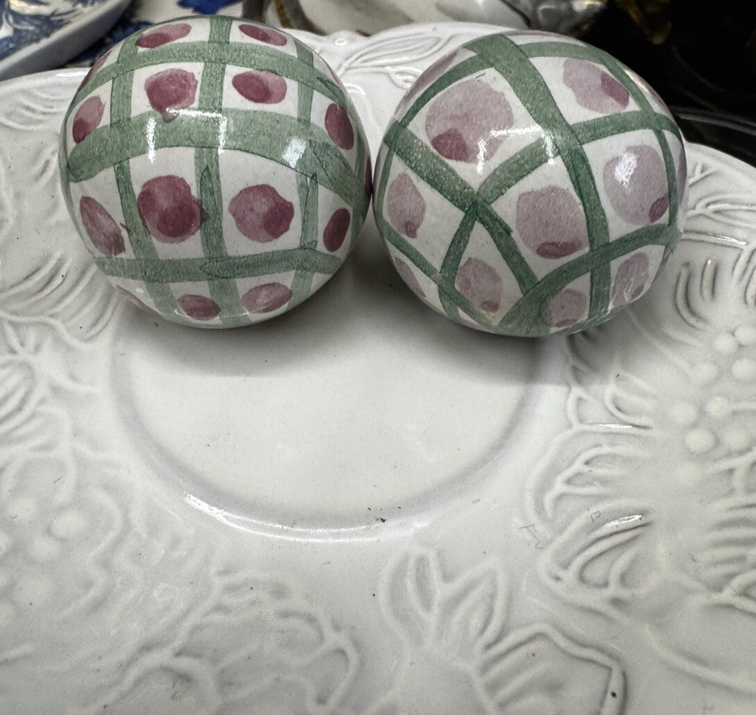 Mackenzie Childs Set Of 2 Hotdog Cart Cabinet Knobs / Pulls Ceramic W Hardware