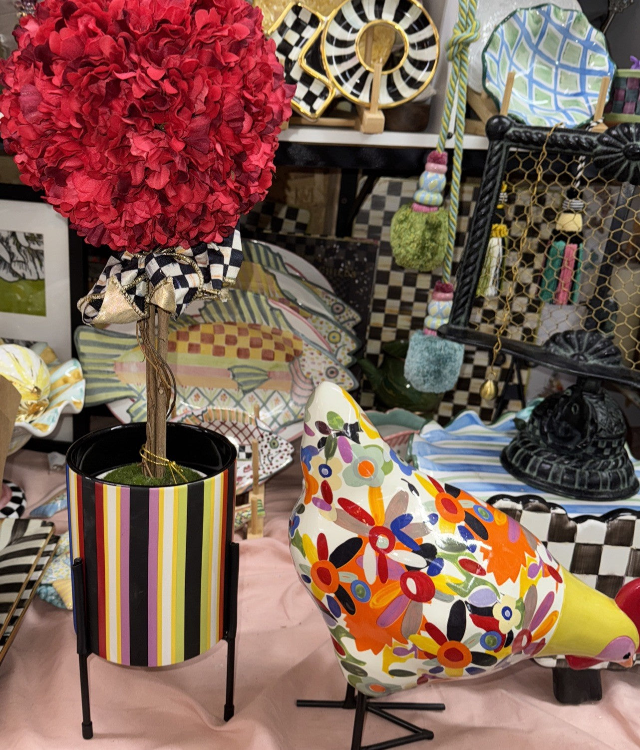 Display your plants or even a bottle of wine with MacKenzie-Childs style in our stripe Avante Garden