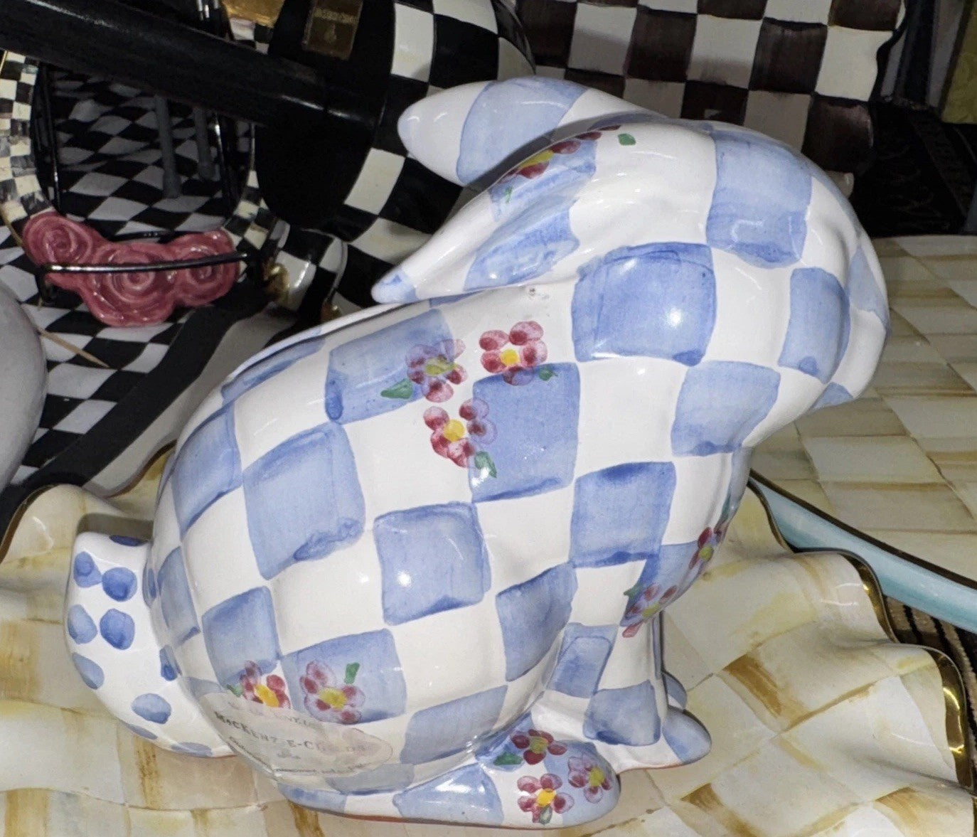 Mackenzie Childs Honeymoon Morning Glory Blue 2013 Bunny Bank RETIRED Ceramic