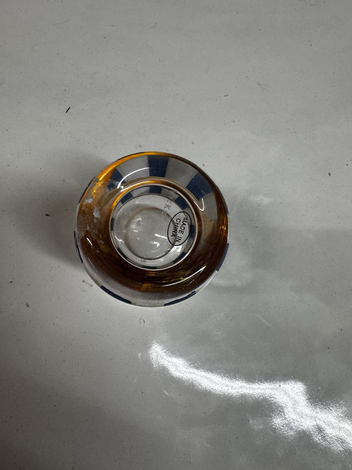 MacKenzie Childs SHOT GLASS Royal CHECK 2 OZ GOLD HAND PAINTED NEW
