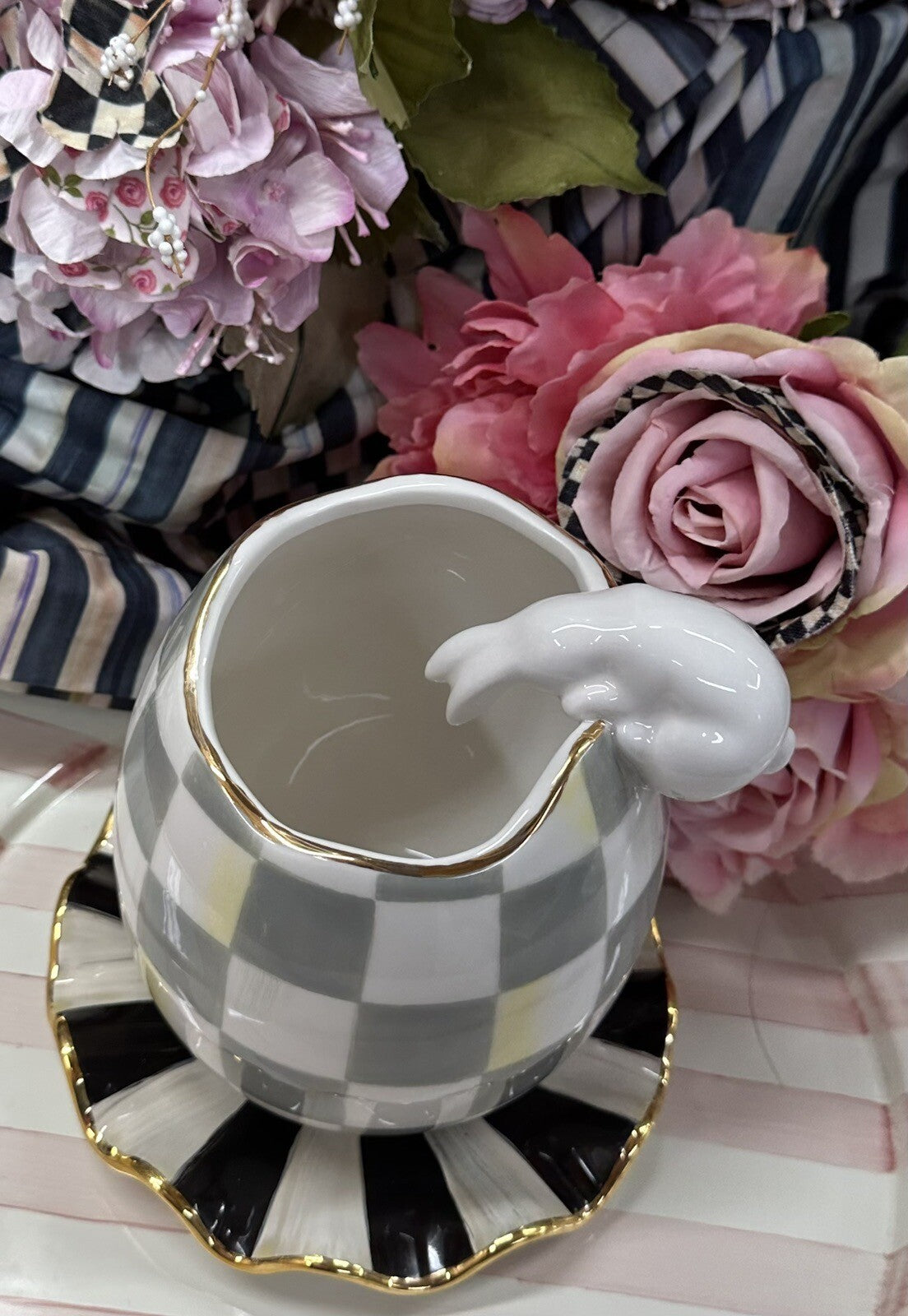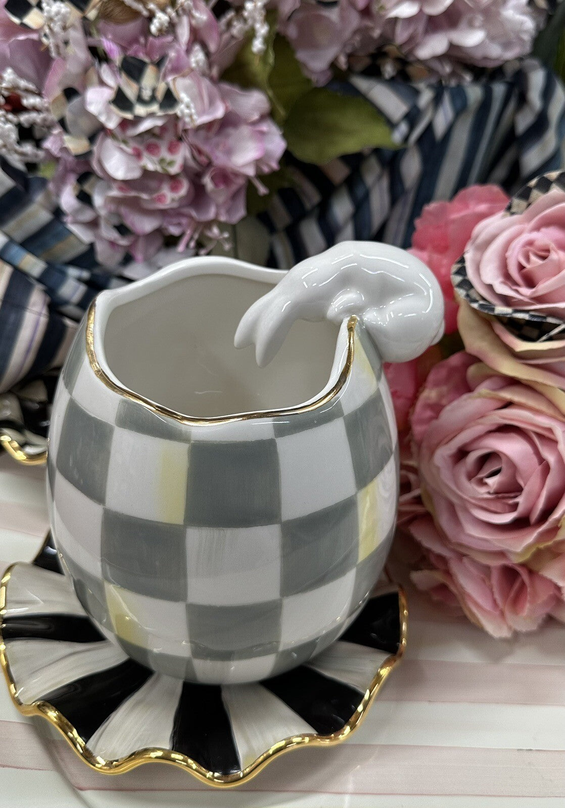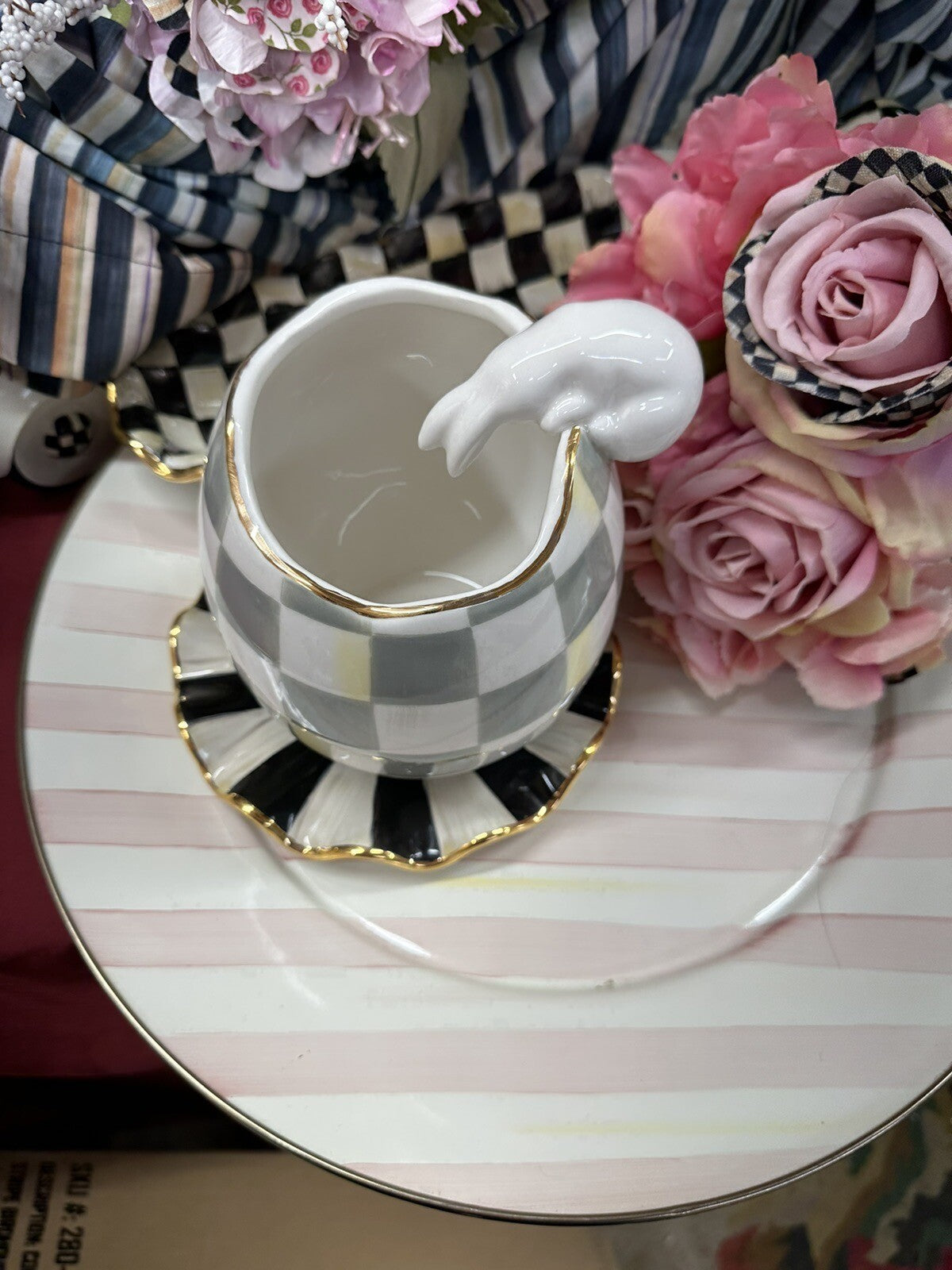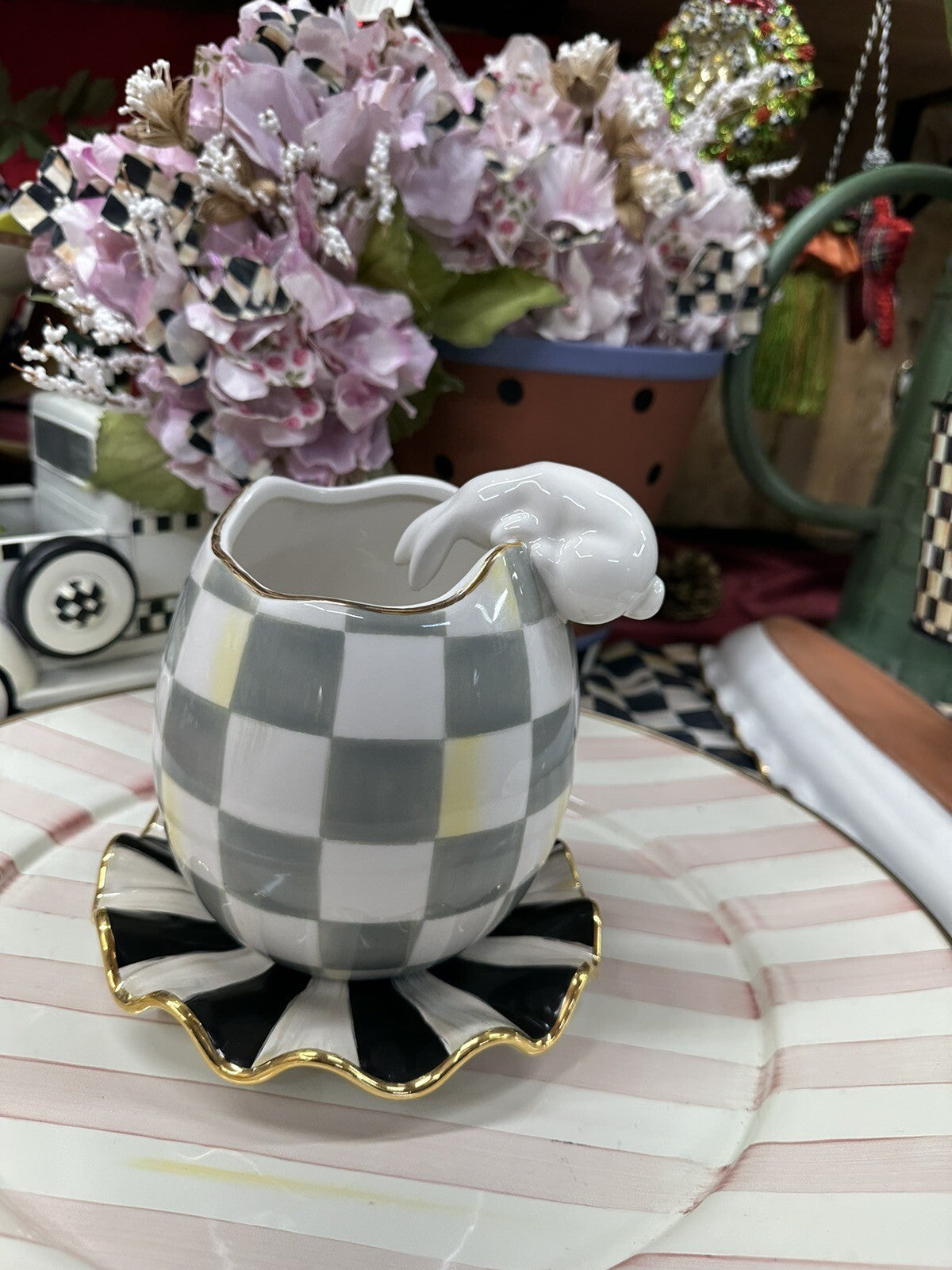 Mackenzie Childs Sterling CHECK Rabbit Looking Into Egg 9” Tall